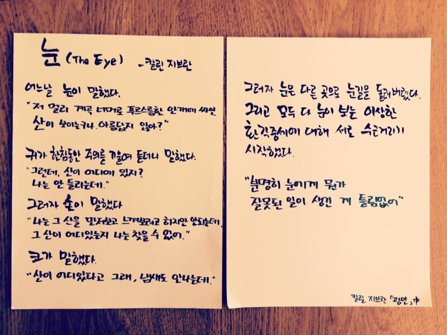 상대의 관점을 이해하지 못하면, 질문을 해도 답을 얻지 못한다. 칼릴 지브란의 시 'The Eye'를 잠깐 함께 읽어보자.