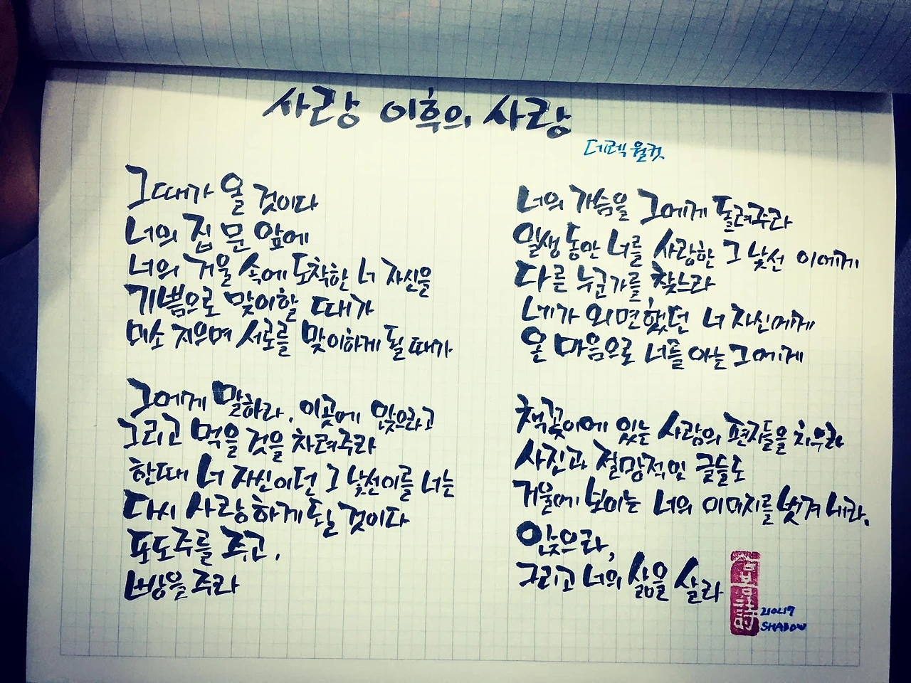 데렉 월컷의 詩 <사랑 이후의 사랑>이 닉 크레이그의 <목적 중심 리더십> 에필로그에 담겨 있어서, 다시 필사하고 낭송해 삼봄詩정원 팟빵 방송으로 보냅니다. 새벽에 혼자 감동해서 떠들다 보니 25분 분량이 되어버렸습니다. 천천히 산책하시며 시간 되실 때 들어주시면 좋겠습니다.