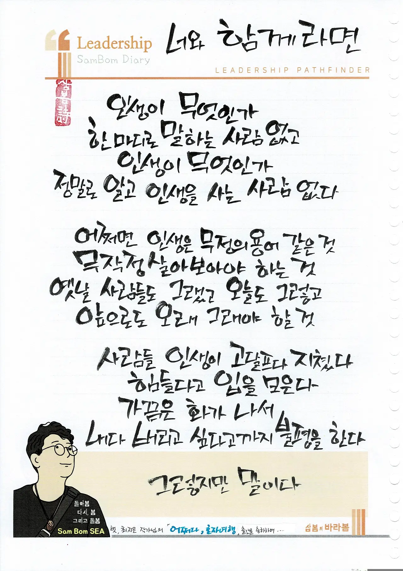 스스로를 길치라고 고백하던 친구가, 약 1000일간 43개 나라를 여행한 기록과 성찰을 담아 여행책을 드디어 출간했다는 소식을 전해왔습니다. 기쁜 마음에 책을 구입해두고, 나태주 시인의 시 한 편을 필사하고 낭송본을 만들어 보내두었습니다.