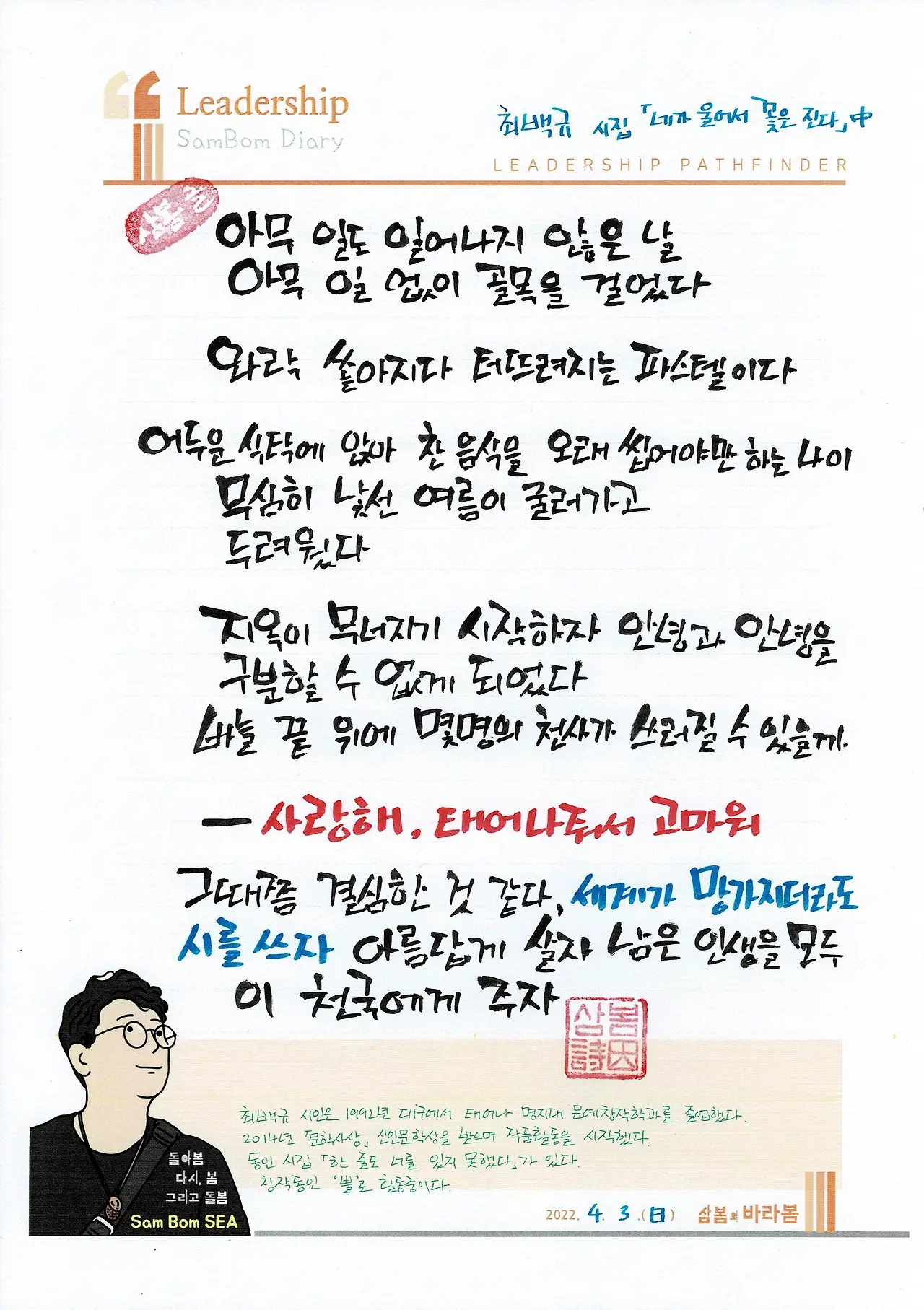 삼봄詩談 _ 가끔 내게 왜 매일 시를 읽고 쓰느냐고 의아해하며 질문하는 친구들이 있다.