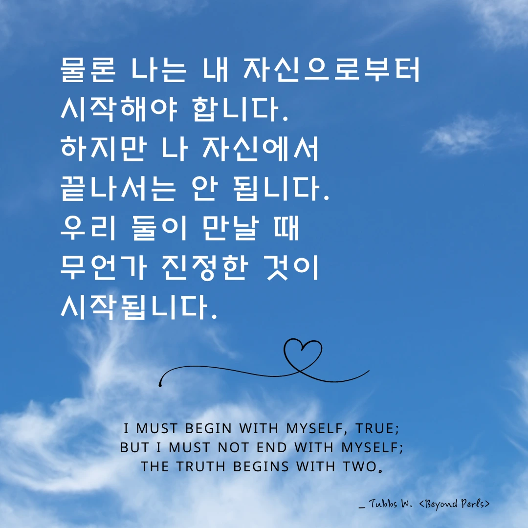 하지만 나 자신에서 끝나서는 안 됩니다. 우리 둘이 만날 때 무언가 진정한 것이 시작됩니다.