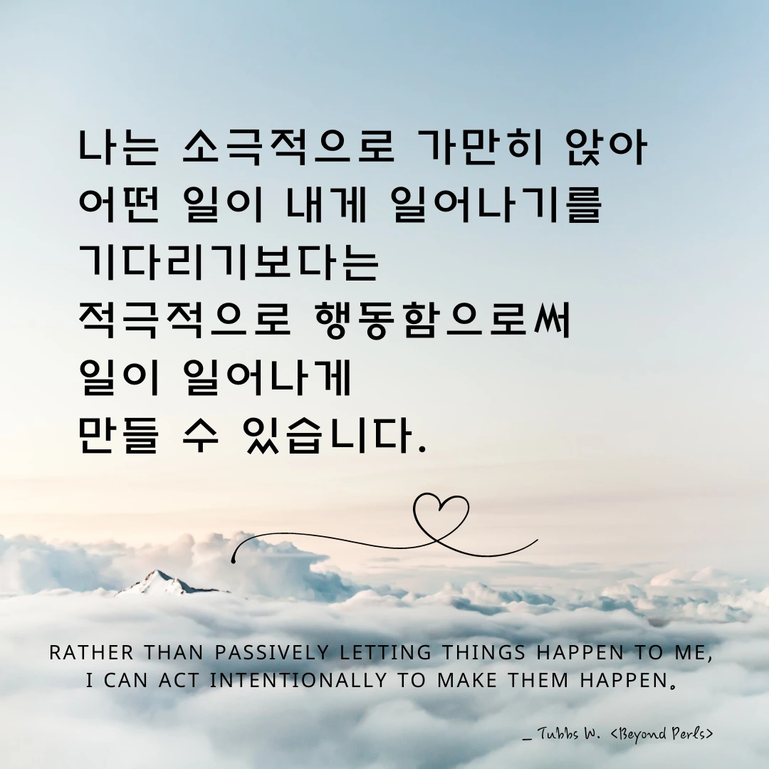 나는 소극적으로 가만히 앉아 어떤 일이 내게 일어나기를 기다리기보다는 적극적으로 행동함으로써 일이 일어나게 만들 수 있습니다.