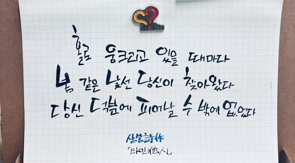 더불어서 사실 현실에서는 한 번도 만나지 못했지만, 책을 통해서, SNS를 통해서 ‘글’이나 ‘사진’으로만 만난 낯선 타자들도 있다. 매일 아침 옮겨 적었던 시를 탄생시킨 시인들도 실제로는 한 번도 보지 못한 이들이 대부분이다. 누구를 가장 자주 만났고, 누가 가장 큰 영향을 주었는지 따지는 일은 그만두기로 하자.