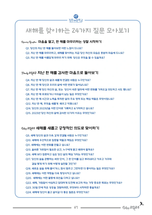 ‘새해를 맞이하는 24가지 질문노트’의 완성도에 관하여