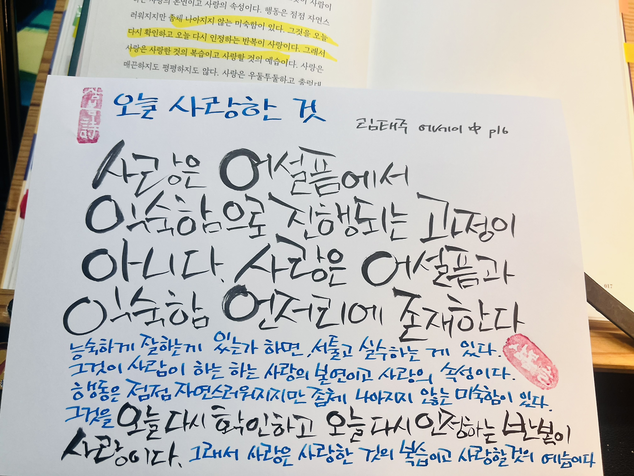 지금, 사랑을 담아 할 수 있는 것을 하련다. 비록 미숙하고, 상처 입을까-상처 줄까 두렵고, 감당키 힘든 아픔을 느끼거나 좌절해 포기하고 싶은 순간이 닥치더라도.