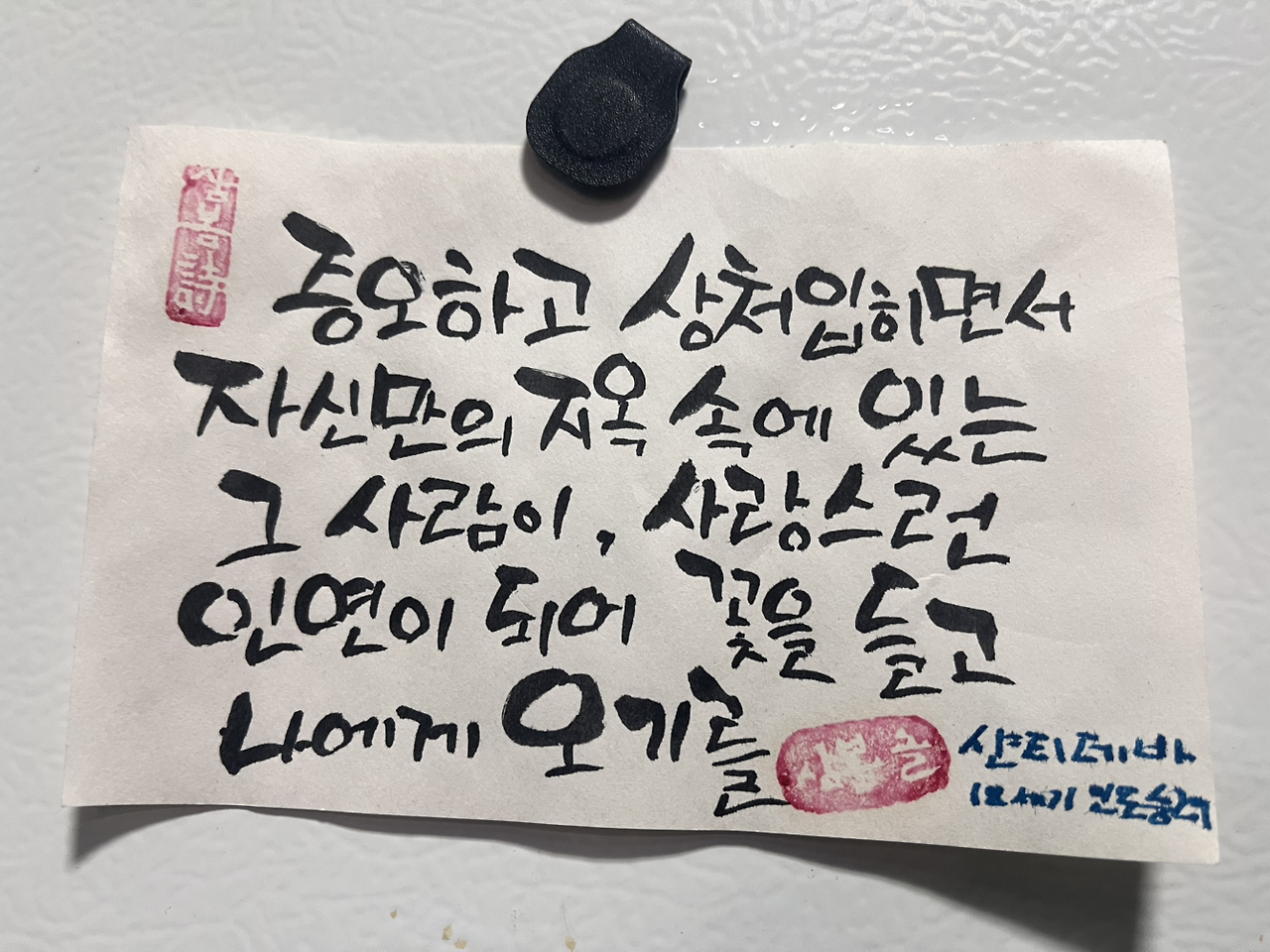 사실 내 곁에는 늘 나를 아끼고 사랑해 주는 사람이 있었다. 그럼에도 불구하고 헛헛해하는 나를 이해할 수 없었다. 내게 와 사랑을 달라는 이들도 있었다. 그렇게 손 내미는 이들의 손을 잡았으나 종종 실패하고 좌절했다. 아, 내게 참된 사랑이 없구나 하며 체념해 가기 시작했다.