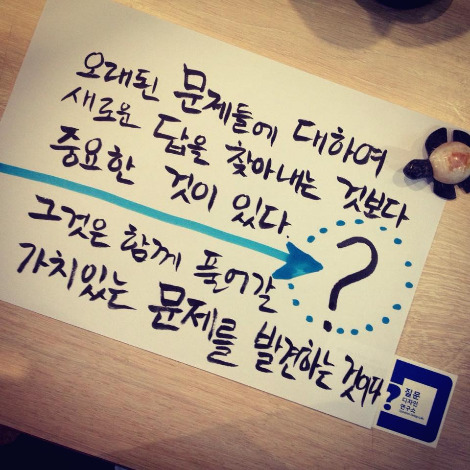 다시 다르게 나 자신에게 물었다. 이 단어를 키워드 삼아서 개인과 조직을 돕는 일을 한다면? 충분히 오래 할 수 있겠는가? 잘할 수 있겠는가? 그 일이 나 자신과 상대방에게도 충분한 의미와 가치를 제공할 수 있겠는가? 10년 이상, 아니 어쩌면 평생 전념할 수 있겠는가를 물었다. 물론 답은 'yes'였다. 몇 가지 비즈니스 모델을 설계해보고, '질문디자인연구소'를 만들었다. 그리고 그동안의 공부와 경험을 바탕으로 '혁신가의 질문'이라는 부족한 책 한 권을 내놓기도 했다.