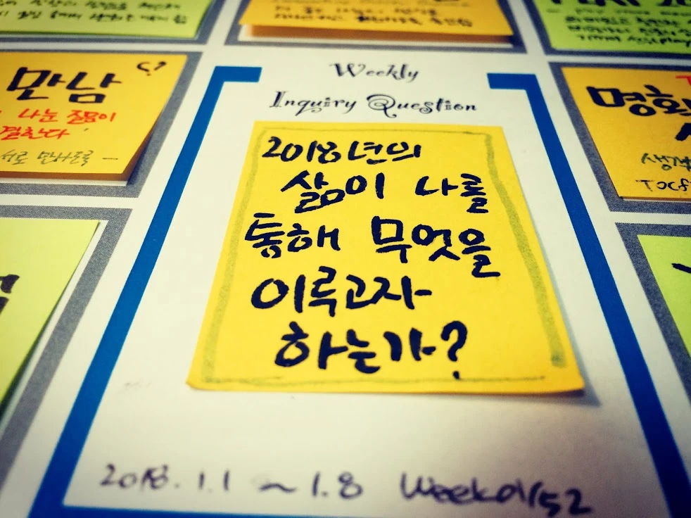 그래서 이번 '한 주간 품고 머물러 답해볼 질문'으로 ‘2018년의 삶이 왜 내게 허락되었는지, 나를 통해 무엇을 이루고자 하는지?’를 선택하고, 내 안에서 올라오는 답들을 끄적여봤다.