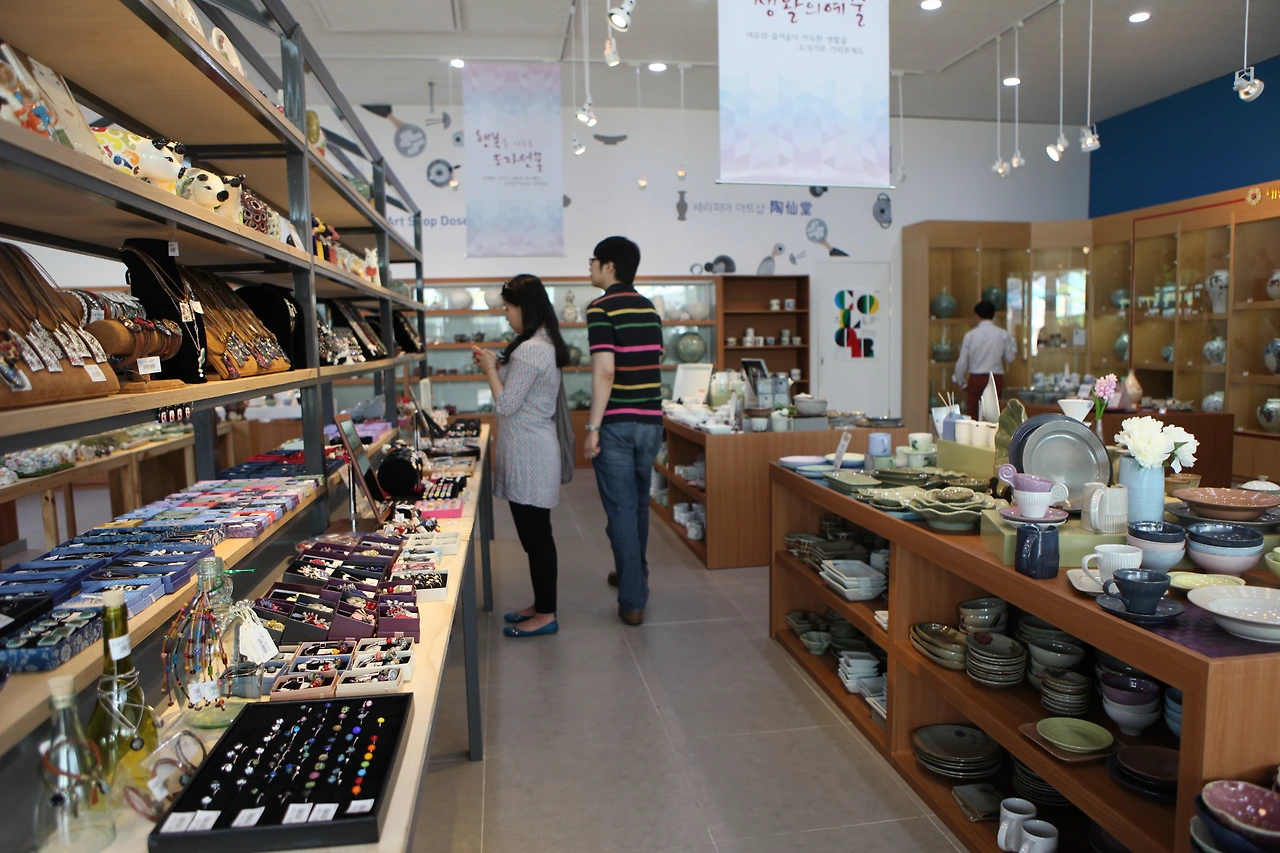 세계도자센터 1층에는 도자기 관련 아트샵이 운영되고 있는데, 도예가들의 재고작품이나 미미한 하자의 B급 상품들도 저렴하게 판매하고 있어 눈여겨볼만하다. 전통가마에서 소성한 작품부터 아기자기한 생활 소품까지 그 폭이 꽤 넓다. 구매한 물품은 별도 배송료 지불시 택배 서비스를 제공한다.