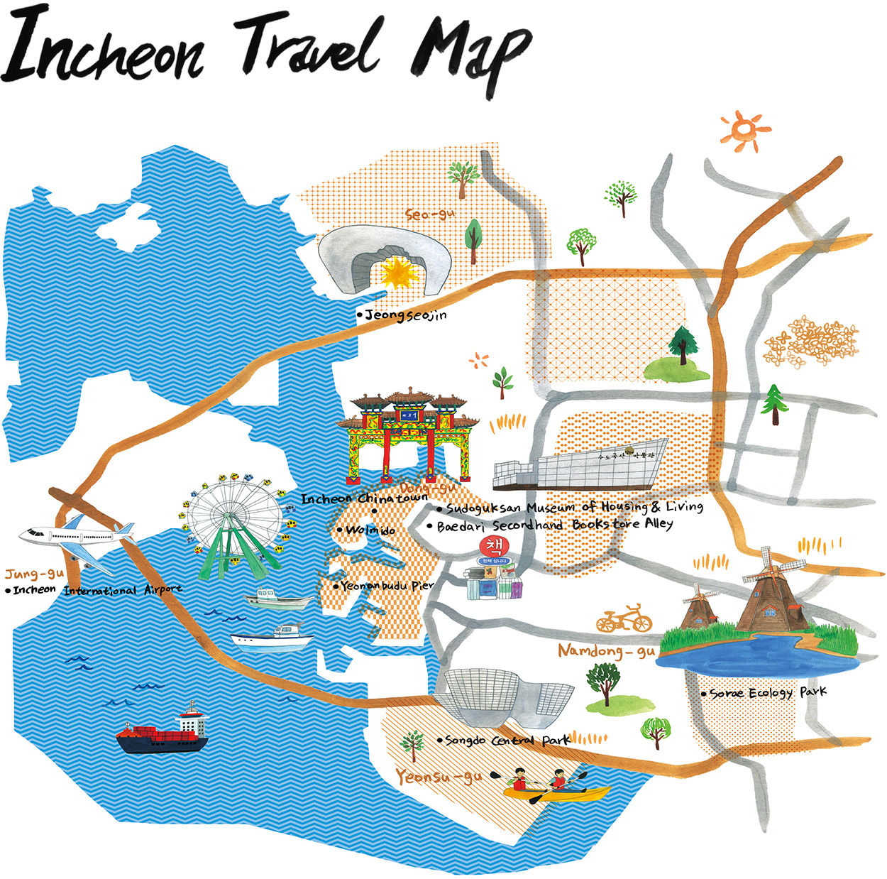 인천국제공항 덕분에 한국을 향하는 여행객이 가장 먼저 방문하게 되는 곳, 바로 인천이다. 대한민국 영토의 100분의 1에 해당하는 넓은 면적으로, 광역시 가운데 1위의 넓이를 자랑한다. 아름다운 섬과 해변가의 풍경도 물론 일품이지만, 이번 여행에서는 계속 진화하고 있는 도심의 구석구석을 살펴본다.