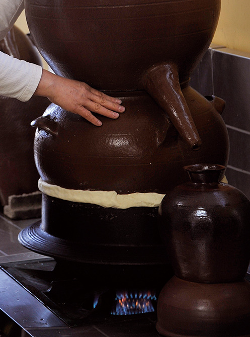 위의 두 술을 빚는 대표적인 양조장은 '제주샘주'와 '제주 고소리술 익는 집'으로, 전국구에서 손꼽히는 술의 명가다. 제주샘주의 오메기술은 청와대 추석 선물로 뽑혀 화제에 올랐다. 제주 고소리술 익는 집에서는 고소리술/오메기술로 제주 무형무화재에 지정된 초대 기능보유자 김을정 명인에게 전수받은 며느리와 손자까지 4대에 걸쳐 전통의 맥을 잇고 있다. 700년이 넘도록 제주에서 사랑 받은 고소리술을 전통 본연의 방식으로 빚기에는 사실 품과 시간이 많이 든다. 오메기떡으로 만든 오메기술을 무쇠솥 위에 얹은 고소리에 넣고 뒤 불을 지핀다. 술을 내리기 위해 장작불을 지피던 것이 가스불로 바뀐 것 말고는 다 옛 것 그대로다.