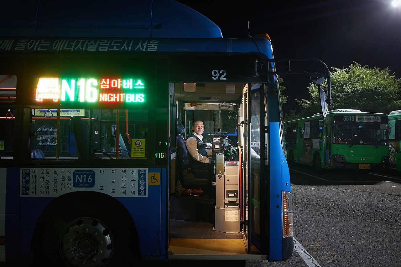 밤에 얼마나 많은 사람들이 깨어서 저마다의 삶을 살아가고 있는지 이전에는 미처 알지 못했다. 이전에는 그저 잠자는 시간으로 생각했지만, 이제는 다양한 사람들이 움직이고 어쩌면 낮보다 더 생명력이 넘치는 시간이라고 생각한다. 버스 운전으로 따지면 낮에 자유롭지 못했던 부분이 밤에 오히려 더 자유롭기도 하고, 37년간 낮에 운전했던 내가 은퇴 후에 다시 심야버스기사로 운전대를 잡은 걸 보면, 밤은 ‘인생의 2막’을 의미하기도 한다. 손님들도 나도 인생의 새로운 이야기를 심야에 쓰고 있다.