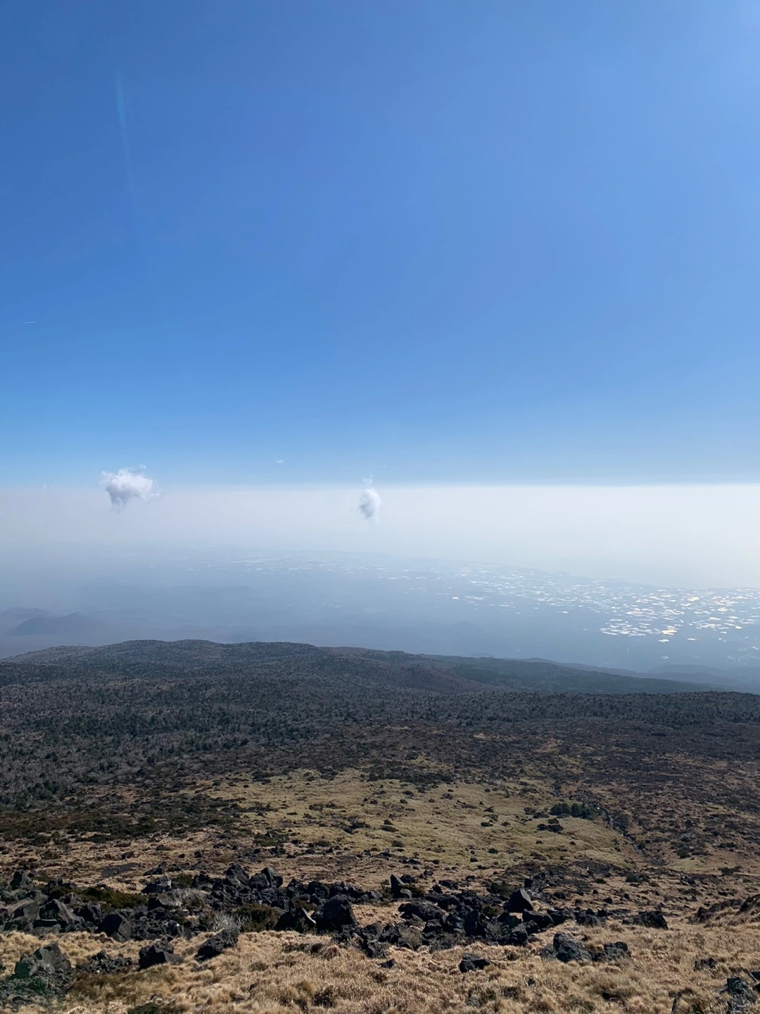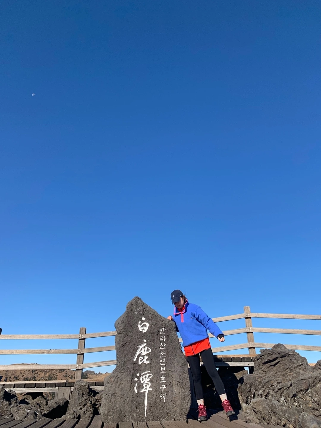 그렇게 걷고 걷다가, 동이 트기 시작했다. 점점 주변의 나무, 돌, 하늘이 보였다. 정상이 코앞으로 다가온 것 같았지만 봉우리가 보이진 않았다. 힘들었지만 다리는 쉴 새 없이 움직였다. 마지막 휴식을 취한 뒤 막판 스퍼트를 올렸다. 끝이 없을 것 같던 계단을 오르고 올라 정상에 도착했다. 세찬 바람을 뒤로하고 백록담도 보았다. 후들거리는 다리를 붙잡고 정상석에서 사진을 찍고 밥을 먹었다. 기운을 차리고 보니 멋진 전경, 그리고 그곳에 오른 내가 보였다. 제법 멋진 하루였다.