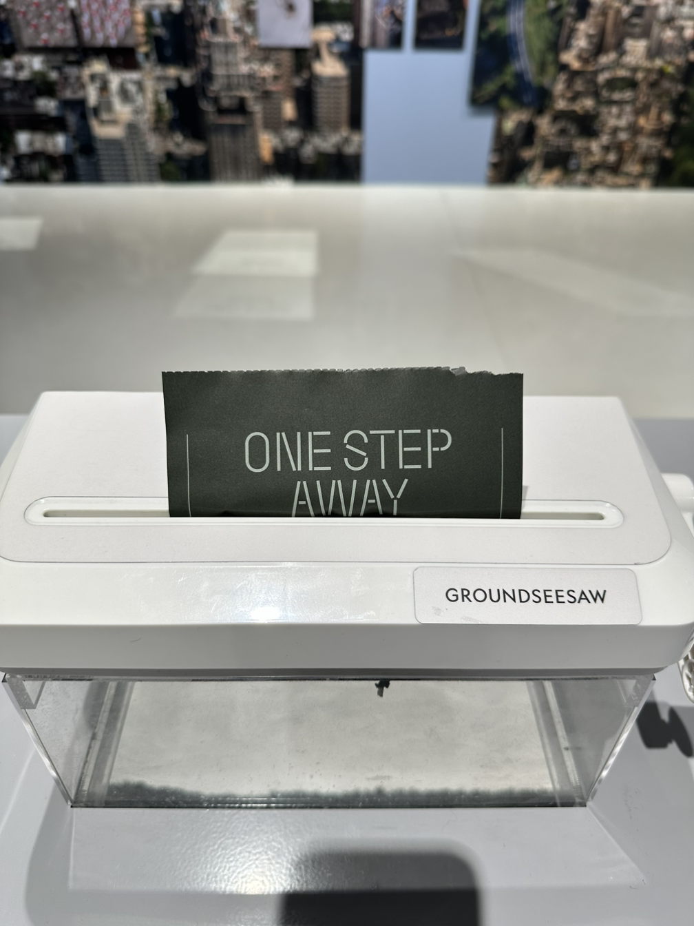 다양한 고민과 생각을 안고 살아가는 사람들이지만 멀리서 보면 작은 점과도 같은 작은 존재들이다. 그것이 작가가 전하고자 하는 'ONE STEP AWAY'의 의미이다.
