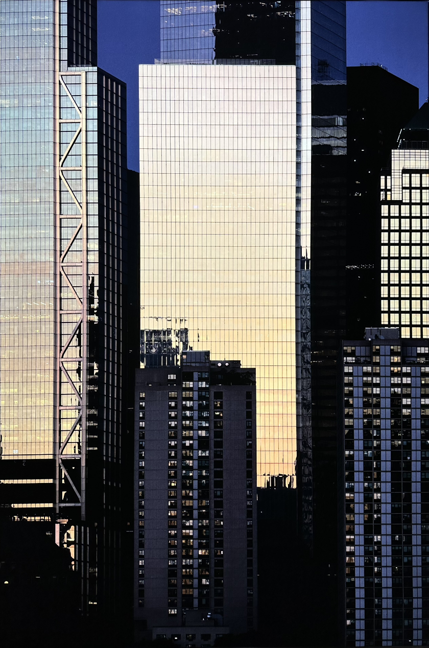 전시장에 들어서면 광활한 규모의 빌딩들이 눈에 들어온다. 대칭과 일정한 패턴을 드러내는 외관이 묘한 안정감을 주기도 하고, 외벽에 비친 빛들에게서는 따스함이 느껴지기도 한다.