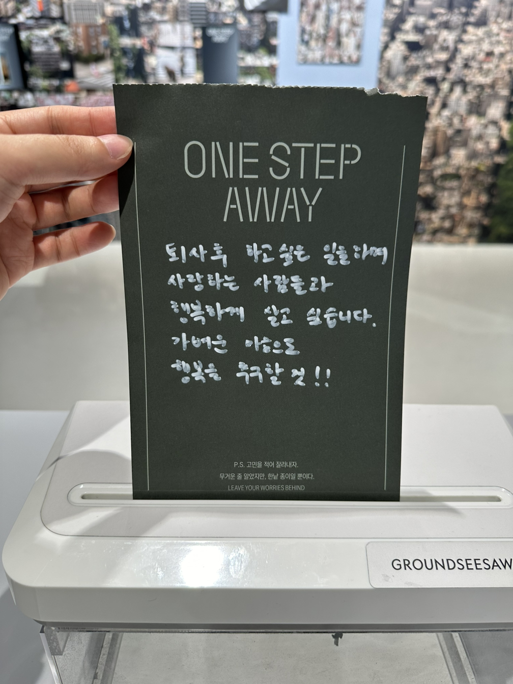 커다란 대상을 바라보는 것 대신, 나의 존재를 축소하여 멀리서 바라봄으로써 얻게 되는 생각들이 있었다. 퇴사 후 조금은 복잡해질 수 있는 마음을 한번 더 정화해 주는 좋은 순간이었다.
