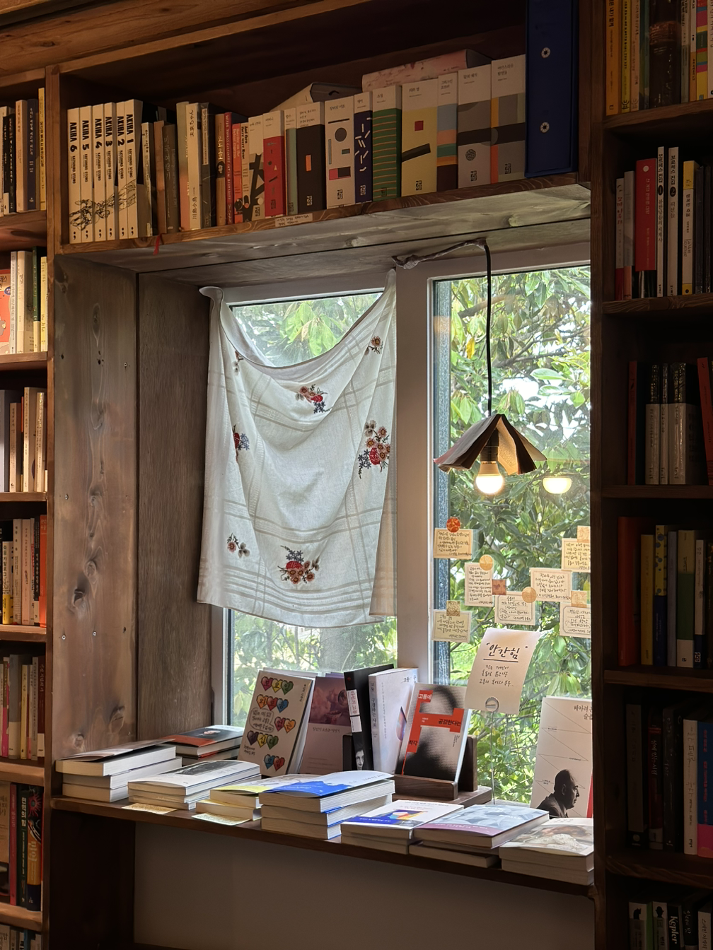 책을 기반으로 흥미로운 컨텐츠와 큐레이션을 제공한다. '억지로 따라온 남자들을 위한 책'이라는 큐레이션이 참 유쾌하다. 자칫 딱딱하게 느껴질 수 있는 서점이라는 공간을 편안하고 재미있게 녹여내고 있었다. 마음에 드는 책을 몇 권 골라 창가에 앉아서 잠깐의 시간을 보냈다.