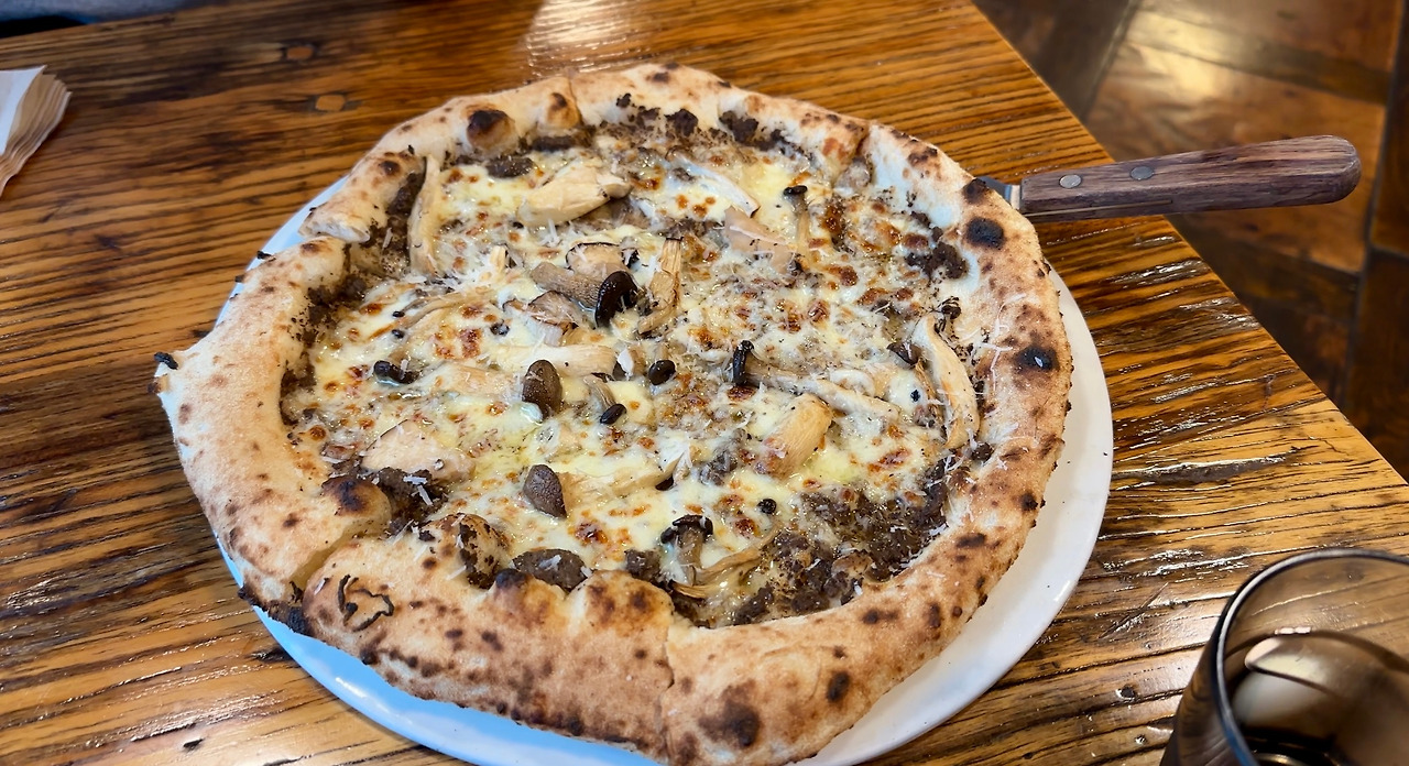 버섯이 듬뿍 올라간 풍기 피자와, 한우 갈비가 더해진 크림 파스타를 주문했다.