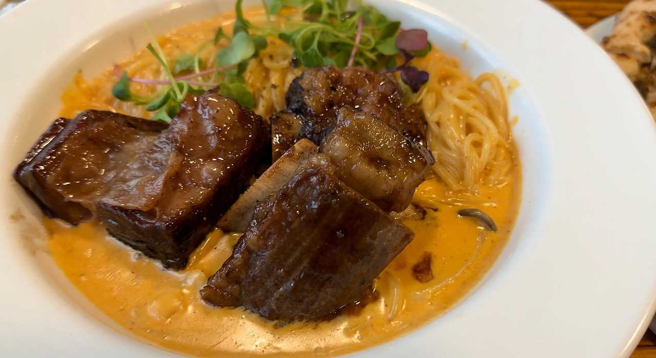 화덕에 구워내 담백하면서도 쫀득한 식감과 은은하게 채워지는 버섯의 풍미가 조화롭다. 꾸덕하고 매콤한 파스타는 육즙과 찰기 가득한 한우 갈비가 더해져 쫄깃한 식감이 매력적이다. 음식까지 맛있는 파주. 이러니 안 좋아할 수가 없다.