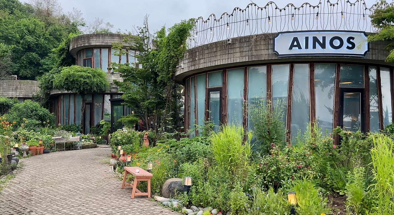 저녁때가 되어 근처의 식당을 찾았다. 화덕피자 맛집으로 유명한 '아이노스'. 원통을 쌓아 올린듯한 독특한 외관이 눈길을 끈다.