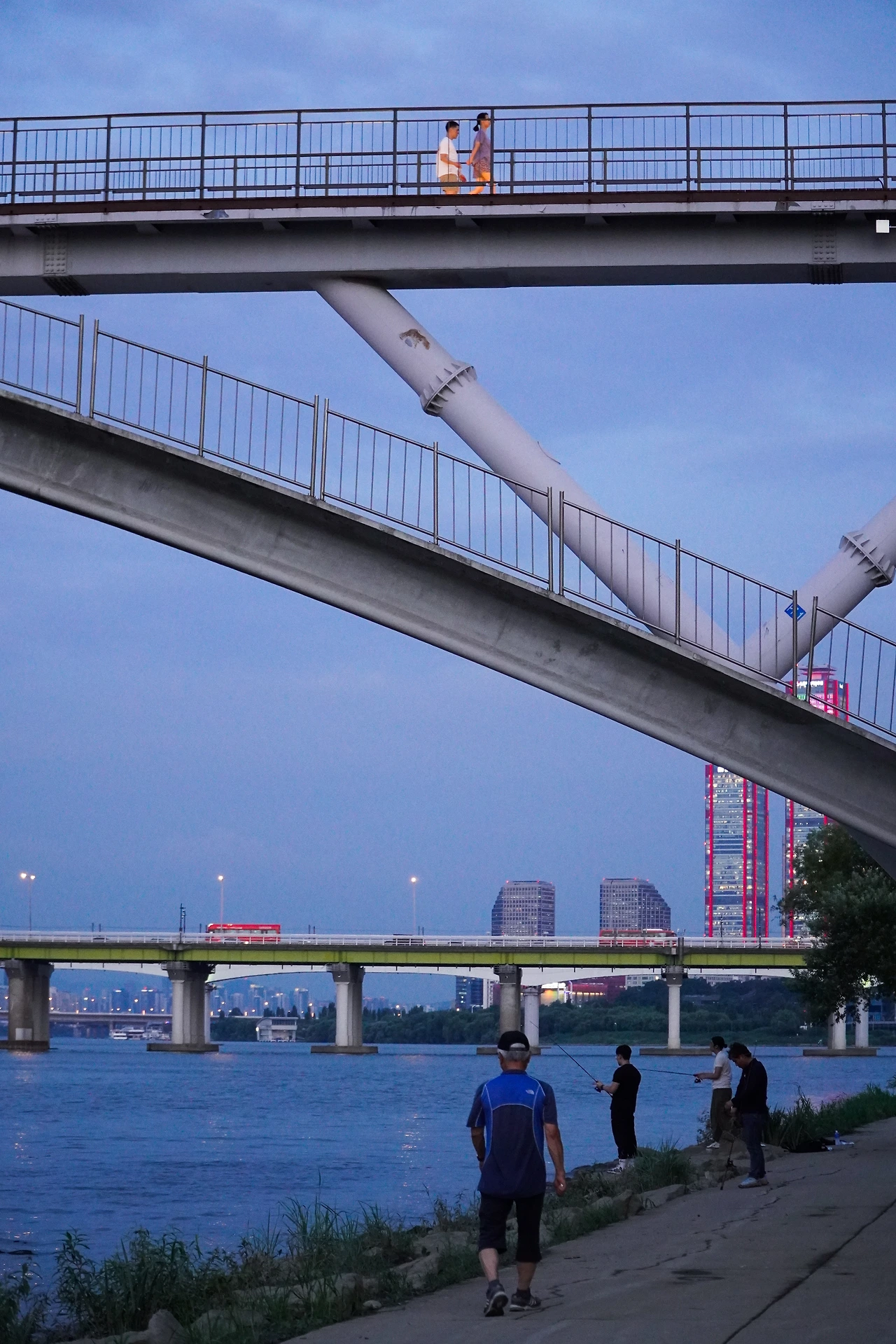 8월의 한강은 아름다운 풍경과는 대비될 정도로 무더운 열기를 뿜어댔다. 그럼에도 입가에는 미소가 떠나질 않는다. 핸드폰으로 찍는 것과는 확연하게 다른 맛이다. 이래서 출사를 다니는구나, 사진을 찍다 보니 자연스레 공감이 된다.