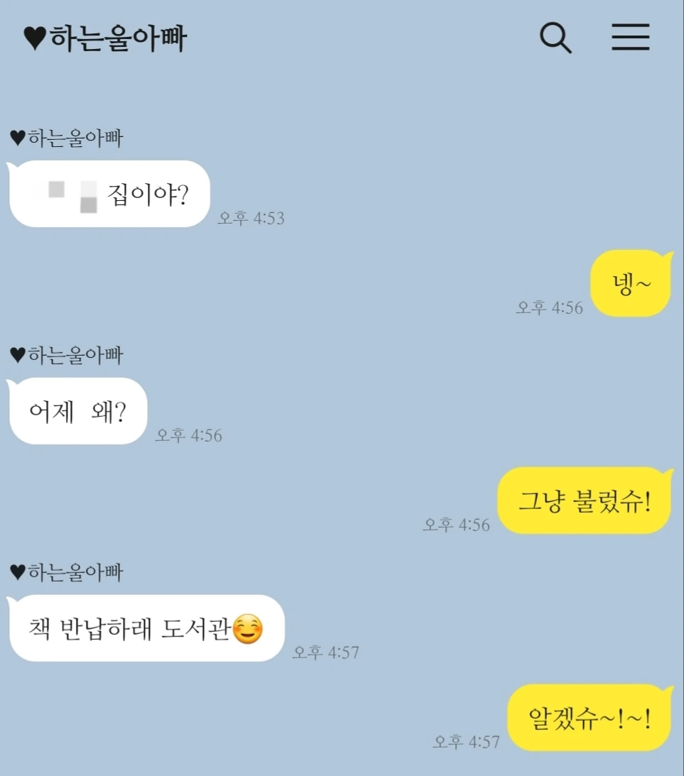 고등학생 때 카톡. 대출 권수 늘리고자 아빠 회원증까지 쓰는 꼼수를 부렸다.