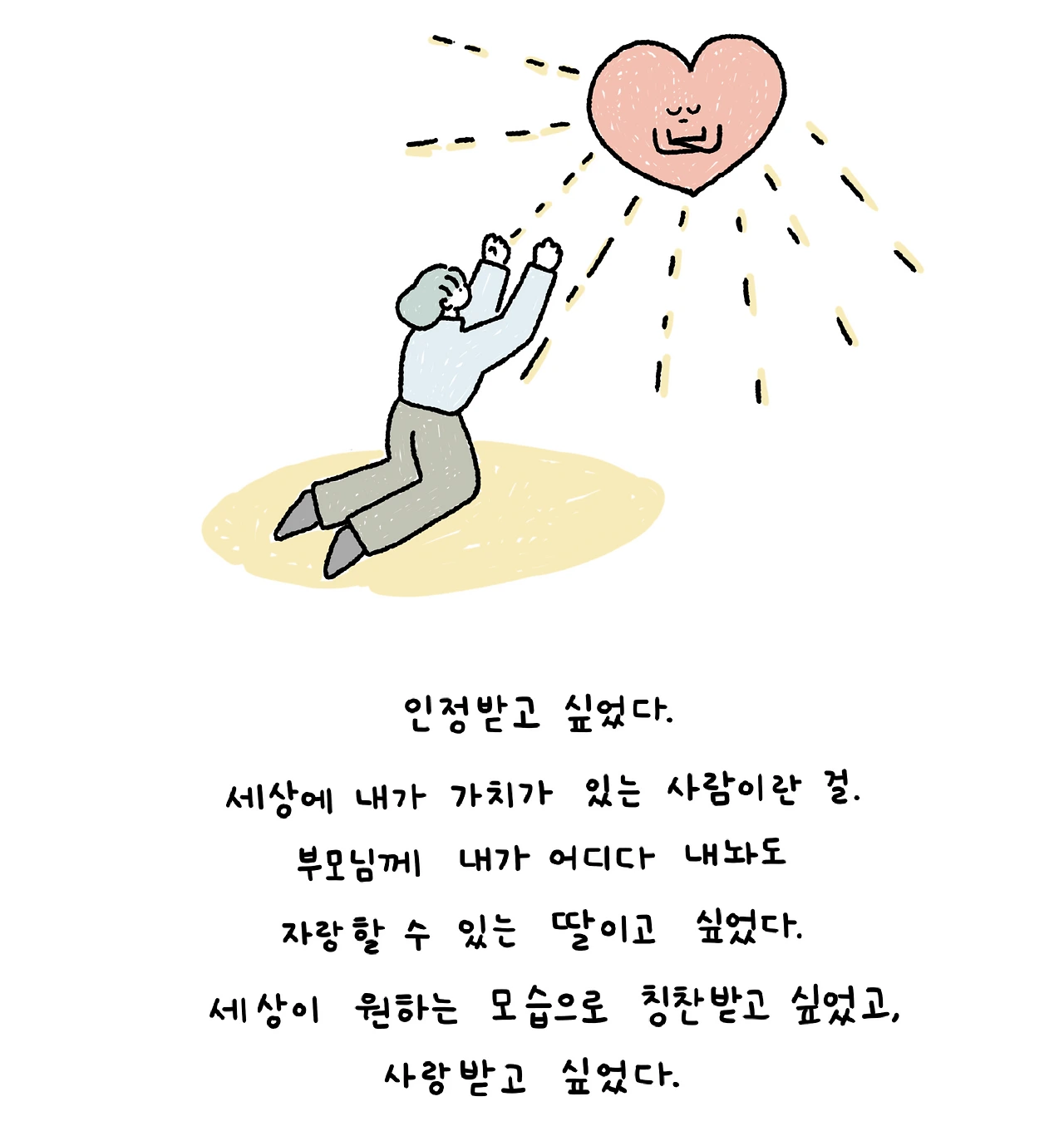 회사를 그만두고 그림을 그리기 시작했고, 내 가게를 오픈하고. 그냥 그 자체가 좋았던 순간들이 있었다. 그런데 어느 순간부터 내가 내 그림에 만족하는 감정보다 내 그림을 보고 눌러주는 '좋아요 개수'가 중요했고, 가게로 이번 달 얼마를 벌었는지가 더 중요해지기 시작했다. 내 그림은 내가 아무리 만족하고 그려도 '좋아요'를 많이 받지 못하면 실패한 그림이었고 삭제해야 할 보잘것없는 그림으로 전락했다. 아무리 한 달 미친 듯 일하고 하루 종일 그림을 그려도 그 달 수익이 나지 않으면 난 그 한 달을 아무 의미 없이 쓸모없이 버려 버렸다고 생각했다. 상대 반응에 목말라 미쳐 날뛰었고, 뭐를 가져다 팔아도 좋으니 어떻게든 돈을 벌고 싶어 발버둥 쳤다. 사람들의 관심과 돈이 내 삶에 전부였다.