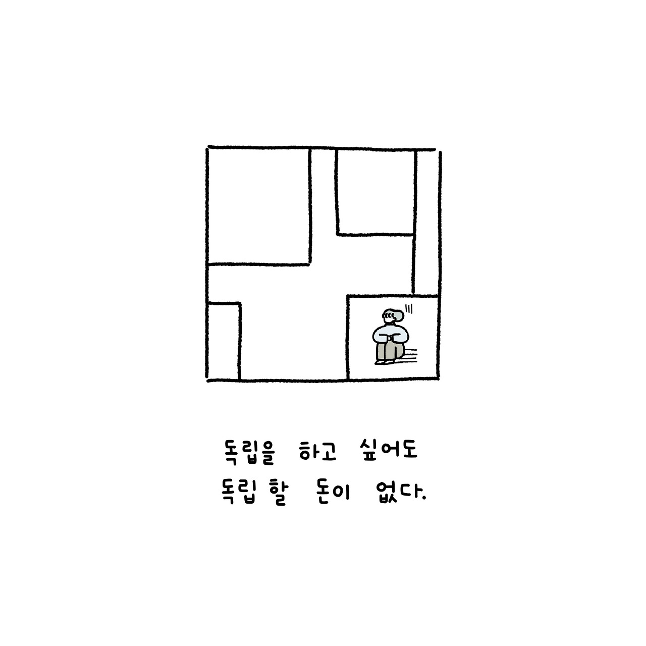 빨리 독립을 하고 싶어서 주위 사람들에게 '나 독립하고 싶다~!'노래를 불렀는데 그게 알게 모르게 전국 팔방에 소문이 났나? 내 보금자리 하나 마련하는 게 왜 이렇게 현실성 없게 느껴지는지. 여기저기서 이 일 저 일 한다고 하고, 직업이 있는데도 지금 당장 입에 풀칠만 하지 내 몸 하나 누울 온전한 내 명의의 공간 하나 없다. 부동산 투기니, 투자니 그런 건 모르겠다. 난 주거를 위한, 주거에 의한 부동산이 필요하다. 마음 편히 쉴 나만의 공간이 절실히 필요하다.