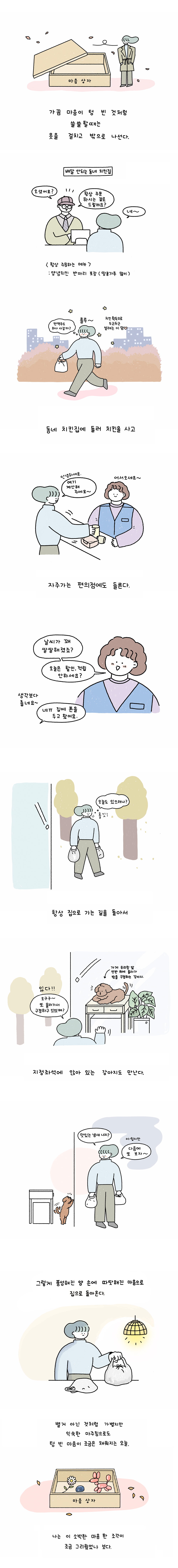 자주 가는 동네 치킨집은 배달은 안되고 포장만 되는 곳인데 깨끗하고 저렴한 데다 반마리 포장이 되니 나에게 정말 딱 맞는 가게다. 이 가게도 꾸준히 자주 가게 되니 내가 항상 주문하는 메뉴도 미리 알고 있고, 항상 뭘 입고 오는지도 기억하고 계신다. 낯가림이 있는 나도 이 년 넘게 이용하니 기다리면서 먼저 간단하게 안부나 가게 하면서 궁금했던 부분도 물어볼 정도로 낯이 두꺼워지고 편해졌다.