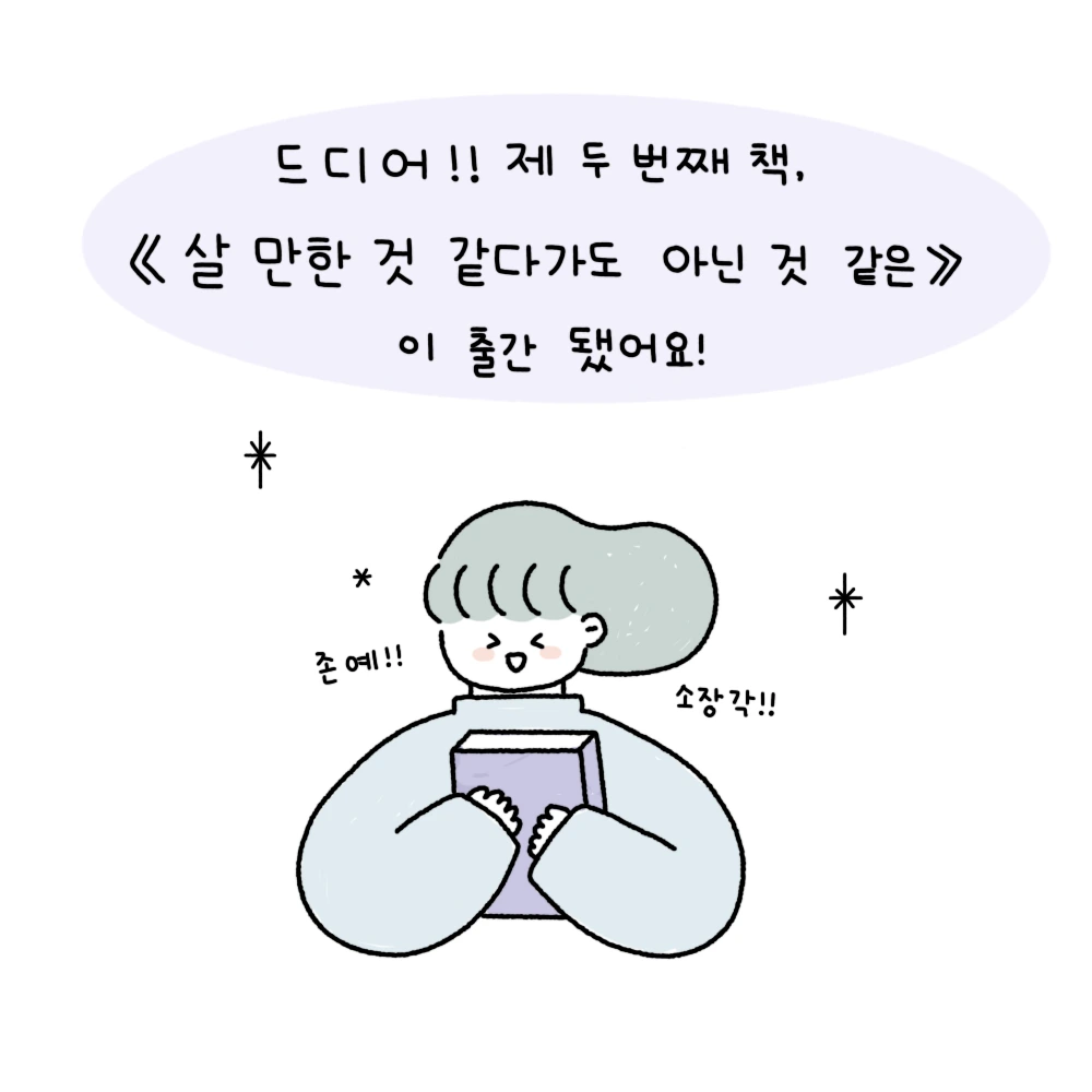 첫 책 <오늘도 집순이로 알차게 살았습니다>는 우울과 무기력에서 벗어나고자 하나하나 차근차근 시작한 일들을 담은 '일상 회복 에세이'라면, 두 번째 책《살 만한 것 같다가도 아닌 것 같은》은 다시 찾은 일상을 힘들지만 내가 원하는 방향으로 살아보려는 노력이 담겨있는 '내 행복을 위한 충천과 위로의 에세이'입니다. 지금의 삶을 열심히 사는 것 같다가도 일상, 관계, 꿈에서 다치고 상처 받고 갈망하는 마음을 표현하기도 하고, 위로를 받는 순간도 담았습니다. 전체적으로 제 생각과 가치관을 그대로 담았어요. 제 생각과 가치관을 글로 내보이는 게 처음이라 이번 책은 출간이 된 지금 전작보다 조금 더 떨리고 긴장되네요. 살 만한 것 같다가도 아닌 것 같은 지금을 하루하루 버티고 견디는 분들이 계시다면 부디 제 책이 공감과 위로가 되길 희망합니다.