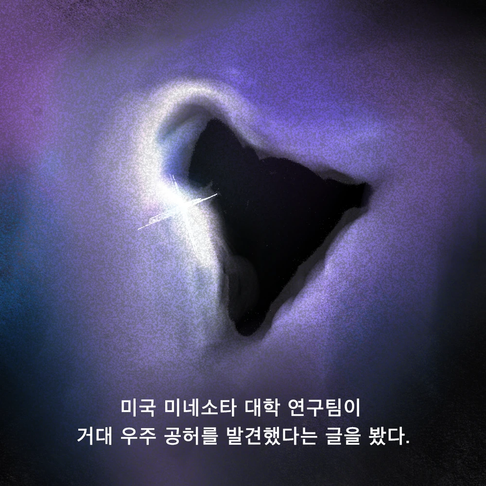 뉴스에서 본 '우주 공허'를 보니 항상 마음 한쪽이 공허한 나는 감정이입이 될 수밖에 없었다. 정말 아무것도 없는 공간에 무언가를 찾아 의미를 부여하려 애쓰는 것처럼, 나도 태어났으니 그냥 살기만 하는 되는 내 삶에 너무 큰 의미를 부여하며 내 마음에 남을 값진 가치를 찾아 나서려고 애쓰고 있는 건 아닐까 하고.