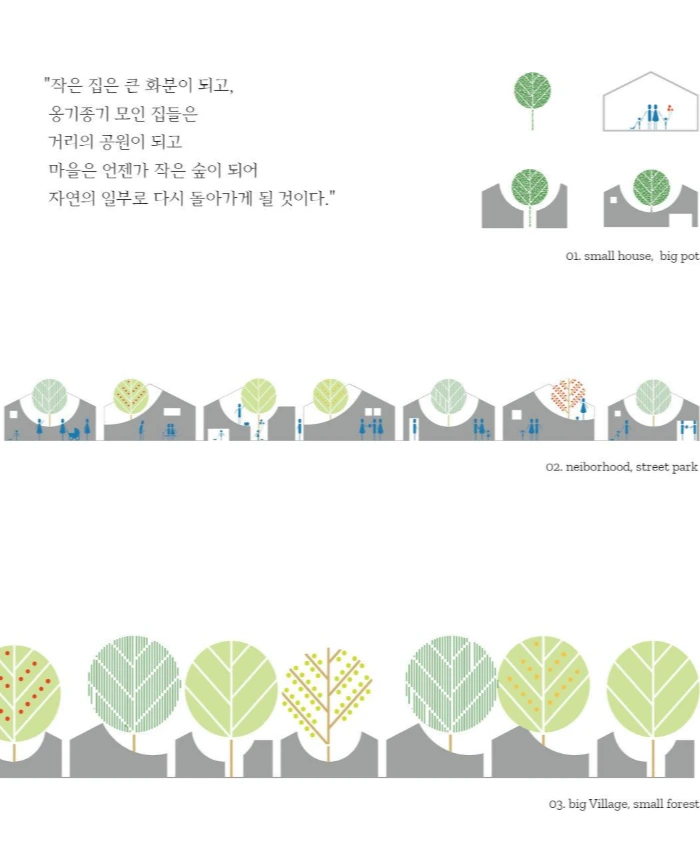 작은 집이 나무를 담는 큰 화분이 되고, 그러한 집들이 늘어나 도시가 좀 더 푸르러졌으면 좋겠습니다.
