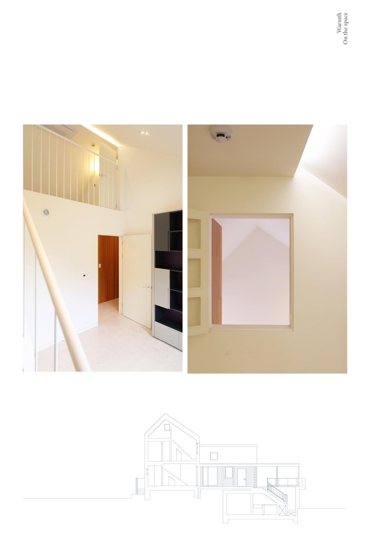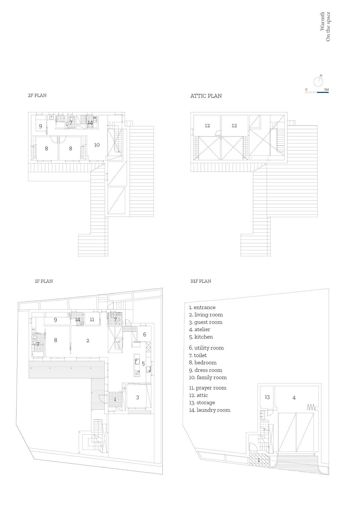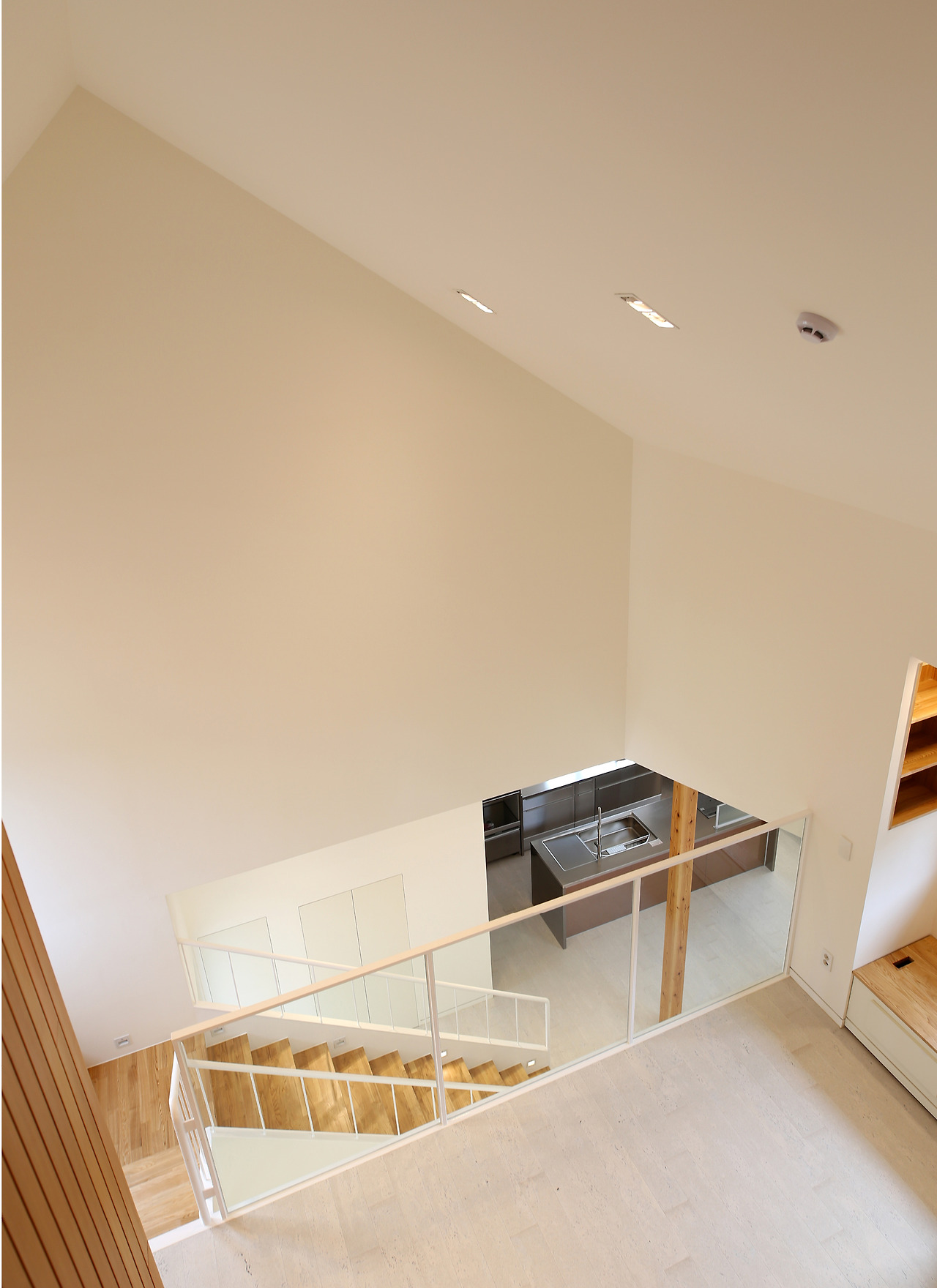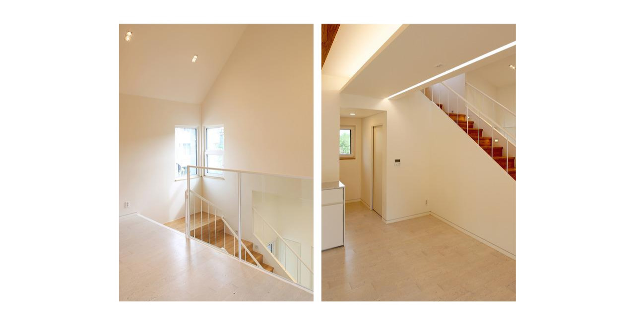 공간적으로는 전체 건물의 단열 존과 분리된 지하 주차공간과, 1층 볼륨의 현관, 식당 주방, 게스트룸 영역, 그리고 2층 볼륨의 주거공간(1층은 거실과 안방 영역 그리고 2층은 가족실과 두 자녀의 독립된 생활영역)