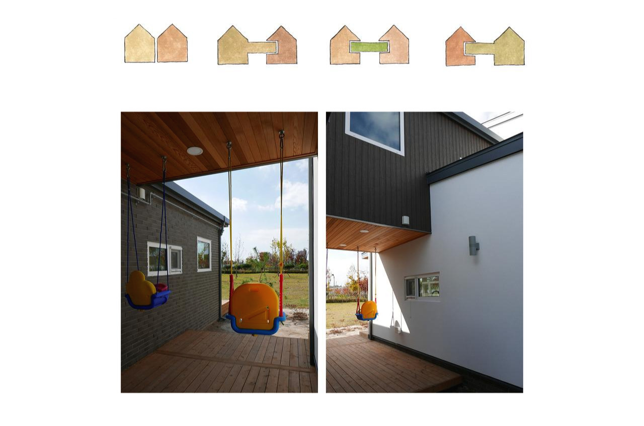 두 집의 어느 한편에 붙어서 좀 더 확장된 기능을 담당하며, 삶의 가능성들을 열어두는 제3의 공간이다.