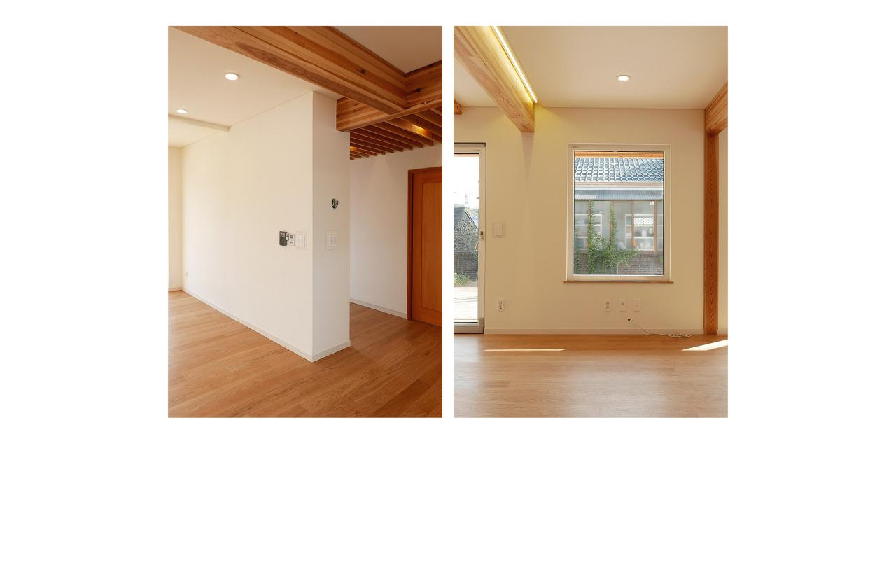 그리고 각 공간에는 주요 보와 한 두 개의 기둥을 그대로 노출하여 나무집의 구조미와 재료미를