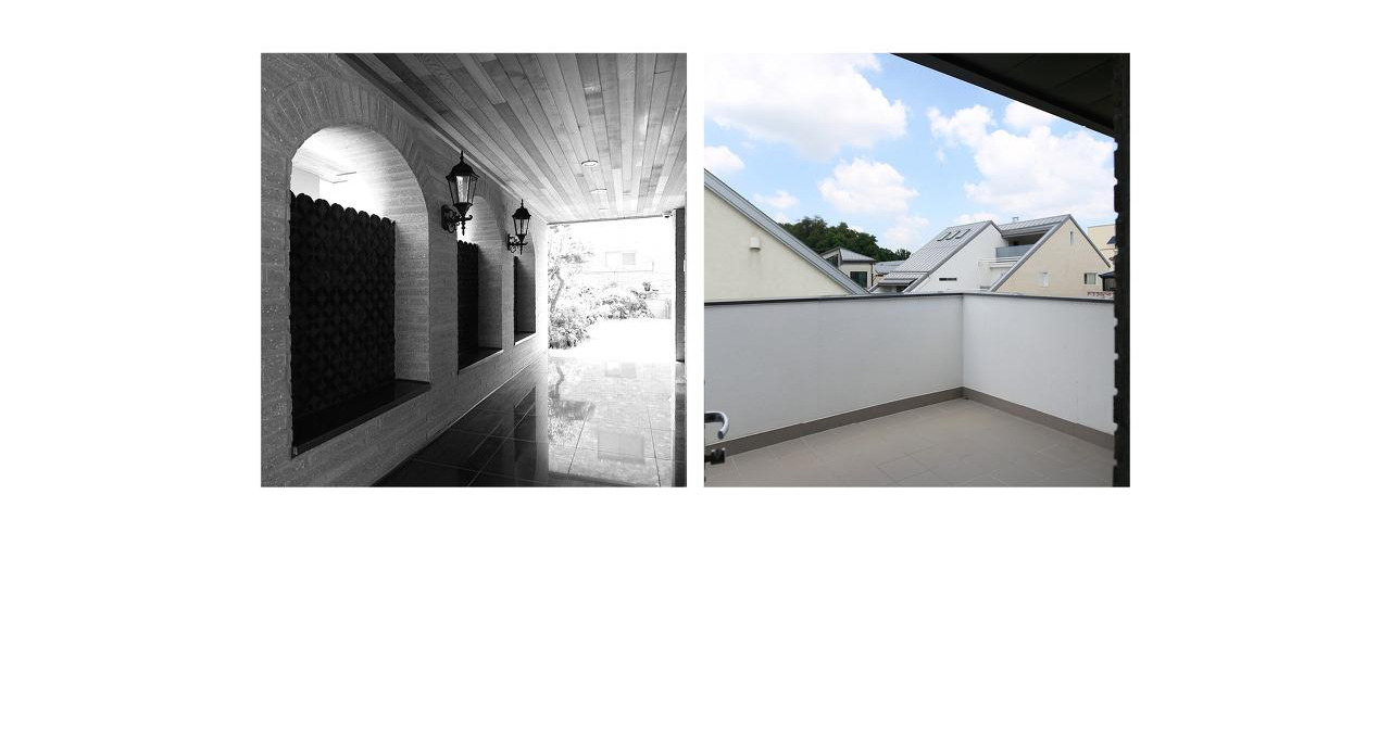 공동의 주차공간과, 마당과 연결된 회랑 공간에서 두 집은 각각의 현관문을 통해