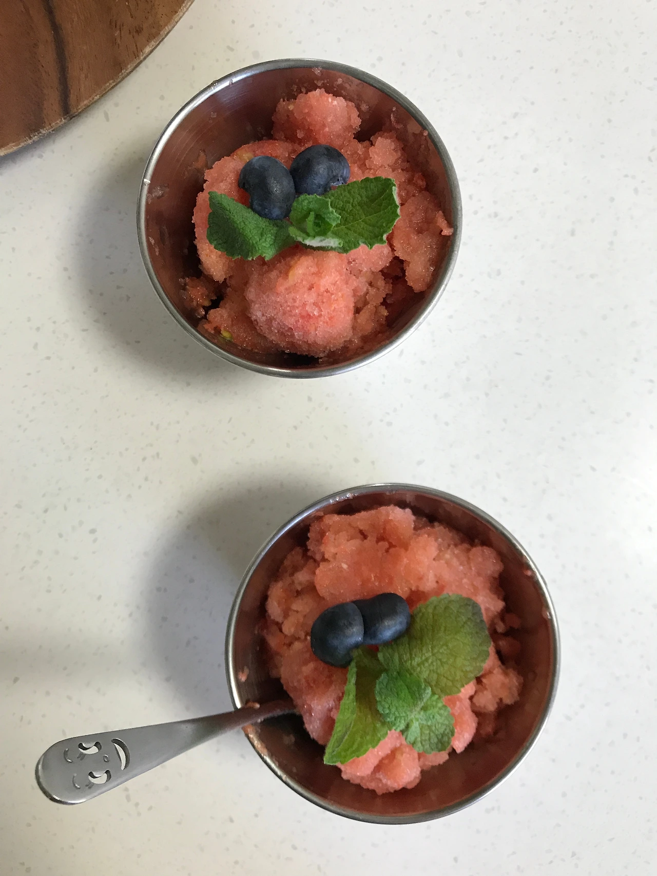 튀김과 다른 반찬들을 연신 집어 먹었다. (내가 좀 더 마셨지만) 맥주를 마시며 이야기를 나누던 어느새 식사가 끝나갔고, L은 이제 디저트까지 내왔다. 블루베리를 얹은 토마토 셔벗. 일전에 P의 가게에서 복숭아 셔벗을 맛봤는데, 올여름 수제 셔벗을 또 먹게 될 줄은 몰랐다. 수제 셔벗은 자기만의 자리를 운영하는 자들의 능력을 보여주는 음식인 걸까. 자기만의 방, 요리, 여름엔 수제 셔버트, 이 사이에 분명 연관성이 있다는 생각이 들었다. 나누어 줄 기쁨을 갖고 있으면서도 영원히 공간을 점유하지는 않는 물질이었다.
