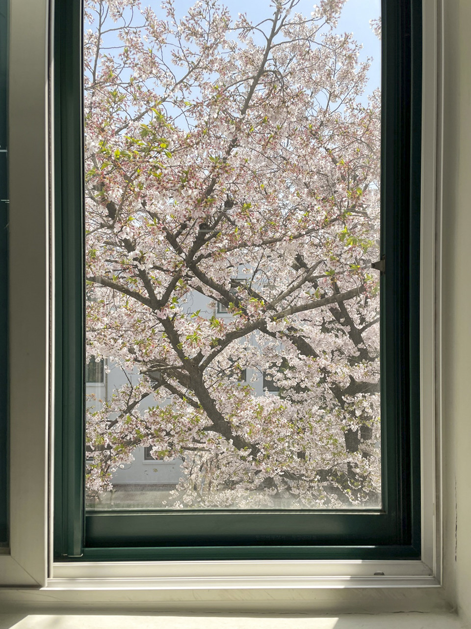 나와 동거인부터가 이 도서관을 뻔질나게 드나들며 생활의 큰 기쁨을 얻는다. 얼마 전엔 만기일 도서를 반납기에 넣으러 한밤중에 도서관으로 같이 향했다가 맥주 한 캔 따면 좋겠다, 캠핑도 가능하겠다 떠들며 놀 궁리를 했다. 그때까지도 조명을 밝혀둔 밤의 도서관 정원을 발견하고 도서관 깨알 활용법을 추가한 것이다. 집으로 돌아가는 길엔 입구에서 미처 못 보고 지나친 만개한 겹벚꽃나무를 뒤늦게 알아차려, 떠나기가 아쉬운 마음에 이리저리 구경하며 만져도 보았었다.