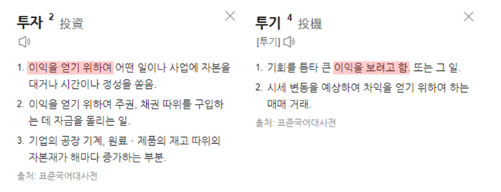 1. 투자나 투기나 돈 벌자고 하는 행위이고 미래를 희망합니다.