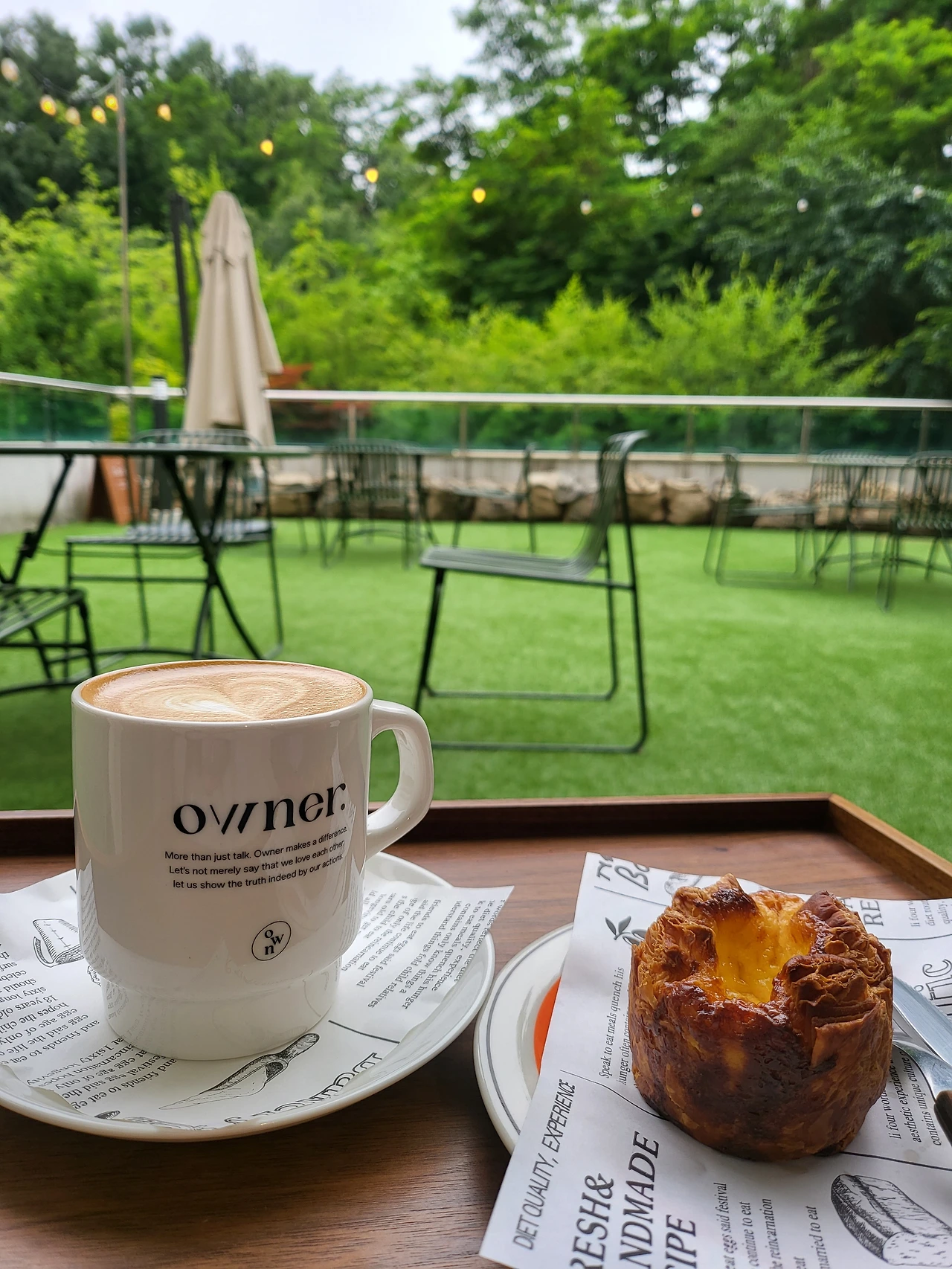 오늘은 기필코 혼자이고 싶기에, 자전거에 올라타고 머리를 굴렸다. 어디로 갈까. 커피 맛도, 휴식도 보장해 줄 한 카페가 생각났다. 그래서 지금 와있다. 고소한 라테, 새가 지저귀는 소리, 따뜻하고도 시원한 바람, 마음에 쏙 드는 음악, 살짝 흐린 하늘까지.