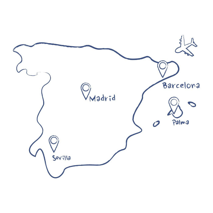 20대 때는 주요 도시를 돌며 도장 깨기를 하는 게 좋았고 '본 건 딱히 없으나 어쨌든 많은 나라를 가봤다.'라고 자랑을 하는 게 좋았는데, 나이를 먹을수록 한 나라에 진득하게 머물며 여유를 만끽하는 게 좋아지기 시작했다. 이번 여행도 스페인에서 진득하게 머물며 스페인 자체를 느끼고 싶었고, 패키지여행과는 차별화된 재미를 엄마미에게 가르쳐 주고 싶었다. 그리하여 내가 생각한 루트는 바르셀로나에서 출발해 마드리드에서 끝나는 바르셀로나 in 마드리드 out의 일정이었다. 바르셀로나(5박 5일) -> 팔마데마요르카(3박) -> 세비야(3박) -> 마드리드(2박) 순서로 스페인을 시계방향으로 한 바퀴 돌 요량이었다.