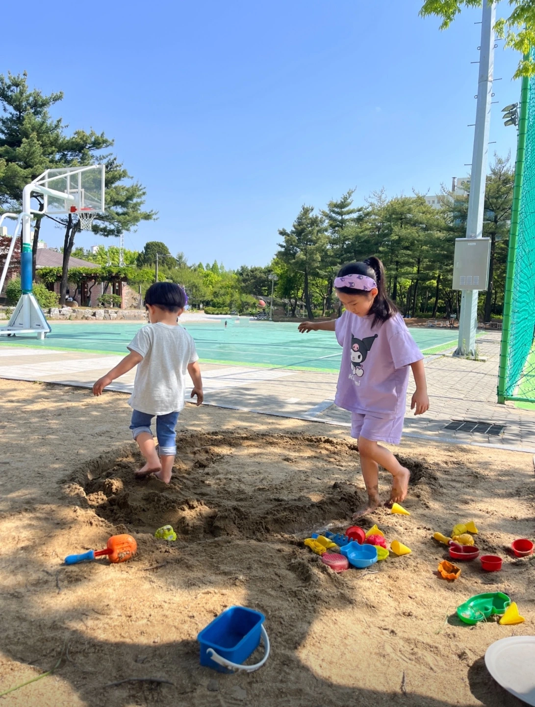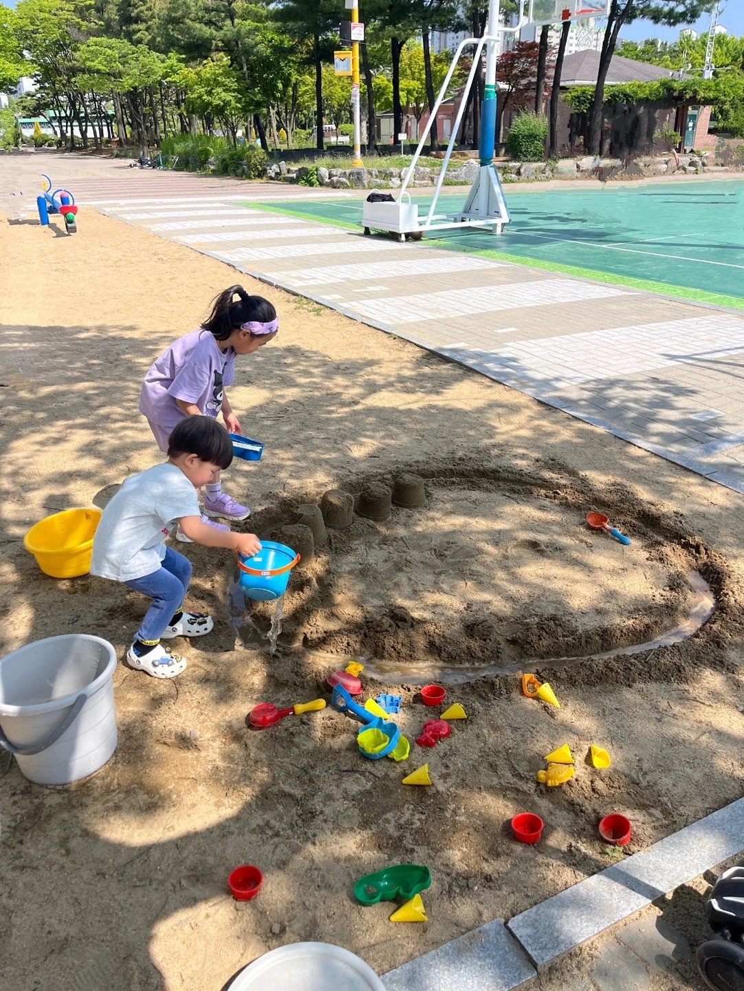 오늘은 아이들과 집 근처 공원에 있는 놀이터에 나가 모래놀이를 했다. 놀이터 옆에 물을 쓸 수 있는 수도가 있어서 양동이에다 물을 받아다 주니 아이들을 몇 시간이고 하염없이 모래놀이를 했다. 그렇게 한참을 노는데도 지겨워하거나 지루해하는 기색 없이 즐거워하는 아이들을 보고 있자니 그런 생각이 들었다. ‘와 모래만 있으면 몇 시간을 이렇게 즐겁게 놀 수 있다니 이 얼마나 멋진 일인가!‘ 그래서 든 생각인데, ’(넓지 않아도) 딱 방 하나 만한 마당만 있어도 너무 좋겠다. 거기에 모래만 있다면 아이들이 한참을 재미나게 놀텐데…‘ 뭐 아무튼 모래놀이 하러 자주 나가야겠다는 생각도 했다. 오늘 하루도 자~알 놀았다!