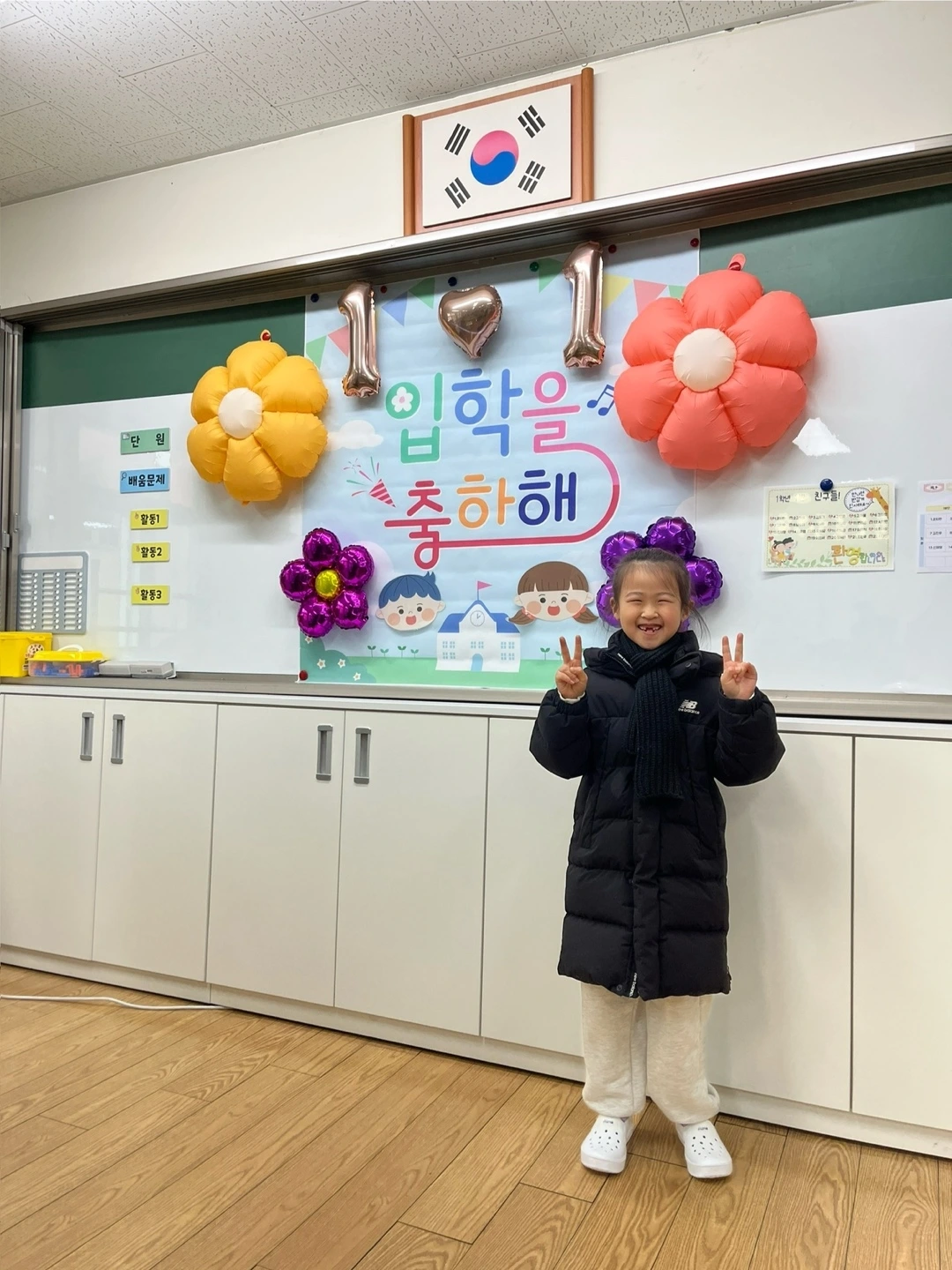 입학식을 무사히 치르고, 첫 정식 등교날. 어제까지만 해도 “내가 교실을 잘 찾아갈 수 있을까?” 묻던 너에게는 “그러엄!! 할 수 있지!” 하고 자신 있게 대답해 놓고서는 정작 나 자신은 내가 준비물을 다 제대로 챙긴 건가, 방과 후 수업은 어떻게 진행되는 건가 머리도 마음도 바쁘게 굴러가느라 정신이 하나도 없다. 아침부터 갑자기 유치원에 (어린이집에서 쓰던) 빨대컵을 가져가고 싶다고 통곡을 하는 둘째를 들쳐 안고 등굣길에 나섰다. 우는 둘째를 데리고 허둥거리면서도, 아이의 첫 등교 모습은 사진으로 남겨두고 싶어서 나는 씩씩하게 걸어 들어가는 첫째를 다급하게 불러 세웠다. “가을아!!!” 그랬더니 뒤를 돌아보며 카메라를 향해 활짝 웃어주며 손으로 브이까지 만들어주던 너. 고맙다. 설레는 발걸음으로 학교에 들어가는 네 모습에 나도 힘을 얻어 둘째를 잘 달래 등원을 시켰다.