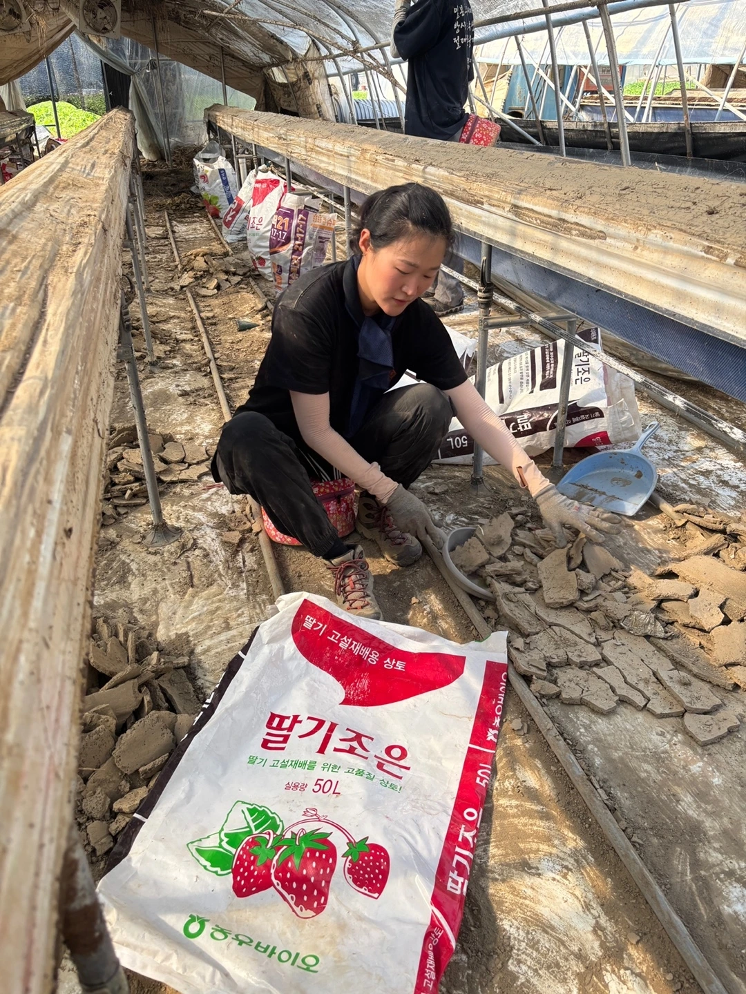 보고도 믿기가 힘든 광경이었다. 수 없이 많은 비닐하우스들이 마치 거인이 밟고 지나간 것처럼 처참히 쓰러져 있었고, 그나마 서있는 비닐하우스도 들어가 보니 거의 꼭대기까지 물이 찼다가 빠진 터라 토사로 뒤덮여 있었다. 하우스 위까지 묻어있는 토사자국이 그걸 말해주고 있는데도, 그걸 내 눈으로 보면서도 나는 그때의 광경을 감히 이해할 수도 상상할 수도 없었다. 우리가 봉사를 갔던 하우스 농부님도 발목, 무릎, 허벅지, 무섭게 차오르는 물에 몸만 겨우 빠져나왔다고 하셨다. 이게 가능한 일인가. 이야기만 전해 듣는데도 등골이 오싹하다. 키우는 개의 목줄도 못 풀어주고 나올 정도로 긴박했다는데, 9개 동의 딸기 농사가 전부 허사로 돌아간 것을 슬퍼하시기보다 그 개를 구해내주지 못한 것에 더 아파하시는 그 마음을 나는 또 감히 상상할 수도 이해할 수도 없다. 그러면서도 밤에 그런 사달이 나지 않고, 낮에 대피하게 돼서 얼마나 다행이었는지 모른다며. 그 처참함 속에서도 감사의 제목을 찾아내는 농부님의 욕심 없이 맑은 마음은 내게 충격적이기까지 했다. 농부님들의 속마음을 내가 다 들여다볼 수는 없었겠지만은, 농부님들은 모두 이 상황을 원망하는 말은 하지 않으셨다. (나는 내가 조금만 손해를 보게 돼도 그 상황을, 혹은 누군가를 또는 나 자신을 얼마나 원망했던가.) 그때 운명을 달리했으면 이렇게 복구하면서 고생하지 않아도 됐을 텐데 하는 그 농담 섞인 말과 미소 뒤에는 함께 고생하는 봉사자들에게 보내는 고마움과 미안함이 있었고, 더 깊숙이에는 생명을 건진 것에 대한 감사와 구해내지 못한 10명(정확한 집계는 아닐지 모르지만)의 생명에 대한 (그리고 수많은 동식물들에 대한) 미안함이 담겨 있었을 것이다. 그 순수하고 맑은 마음들에 나는 따끔하게 매를 맞은 듯도 했고, 한없이 푸근하게 안기는 듯도 했다.