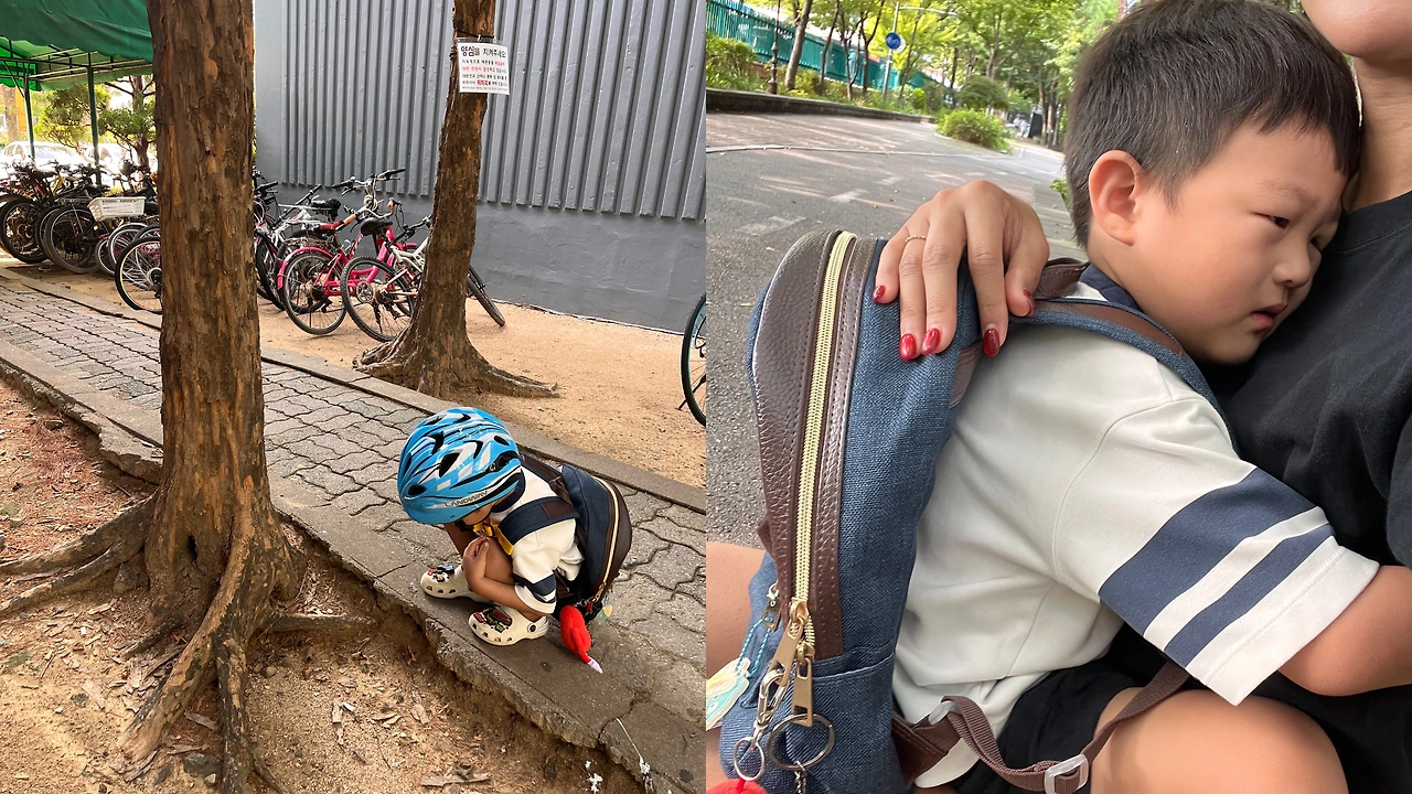 결국 나는 5분이면 등원할 길을 가다 서다를 반복하며 40분에 걸쳐 가기에 이르렀다. 몇 미터 가서 우는 아이를 안아서 달래고 다시 설명하고 설득해서 자전거에 앉히고, 그러다 또 멈춰 서서 우는 아이를 달래고 다시 설명하고 설득하고를 반복했다. 나중에는 우는 얼굴로는 창피해서 유치원에 못 간다는 아이를 한참을 안아주며 진정시켰다. 결국 아이는 잠깐 썼던 헬멧을 벗고 다시 쓰지 않았다. 그렇게 우리는 어렵게 어렵게 유치원에 도착했고, 여름이의 울적한 얼굴을 보고 걱정스러운 인사를 건네는 선생님께 자초지종을 설명드린 뒤, 나는 애써 웃음을 지어 보이며 아이를 들여보냈다.