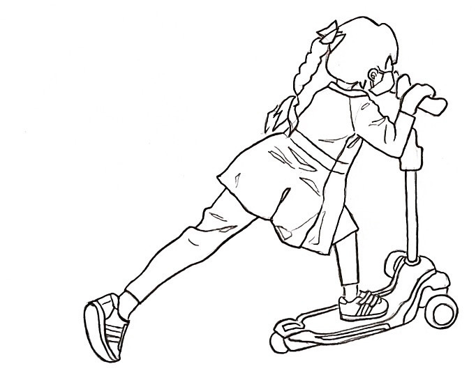 큰 아이는 5살. 3살 때 공원에서 다른 언니 오빠들 킥보드를 너무 부러워해서 사준 킥보드. 사준지는 오래지만 혼자 타지는 못했었다. 늘 엄마나 아빠가 손잡이를 잡고 끌어주면 발을 굴러 타는 식이었다. 직진은 혼자 좀 할 줄 알았지만 방향 전환을 어려워했고, 이사 오기 전에 살던 동네는 언덕에 있는 아파트라 오르막 내리막이 많아 더더욱 킥보드를 타기 쉽지 않았다. 키가 작은 킥보드를 잡아 주는 건 생각보다 허리가 아픈 일이다. 그래서 자꾸만 킥보드를 베란다에 모셔두게 되었다. 게다가 둘째가 태어난 뒤로는 유아차를 기본으로 끌고 다녀야 했기 때문에 킥보드까지 잡아줄 손이 없어 더더욱 모셔두는 날이 늘었다. 그래서일까 아이는 5살이 되어서도 킥보드를 탈 때면 꼭 잡아달라고 했다.