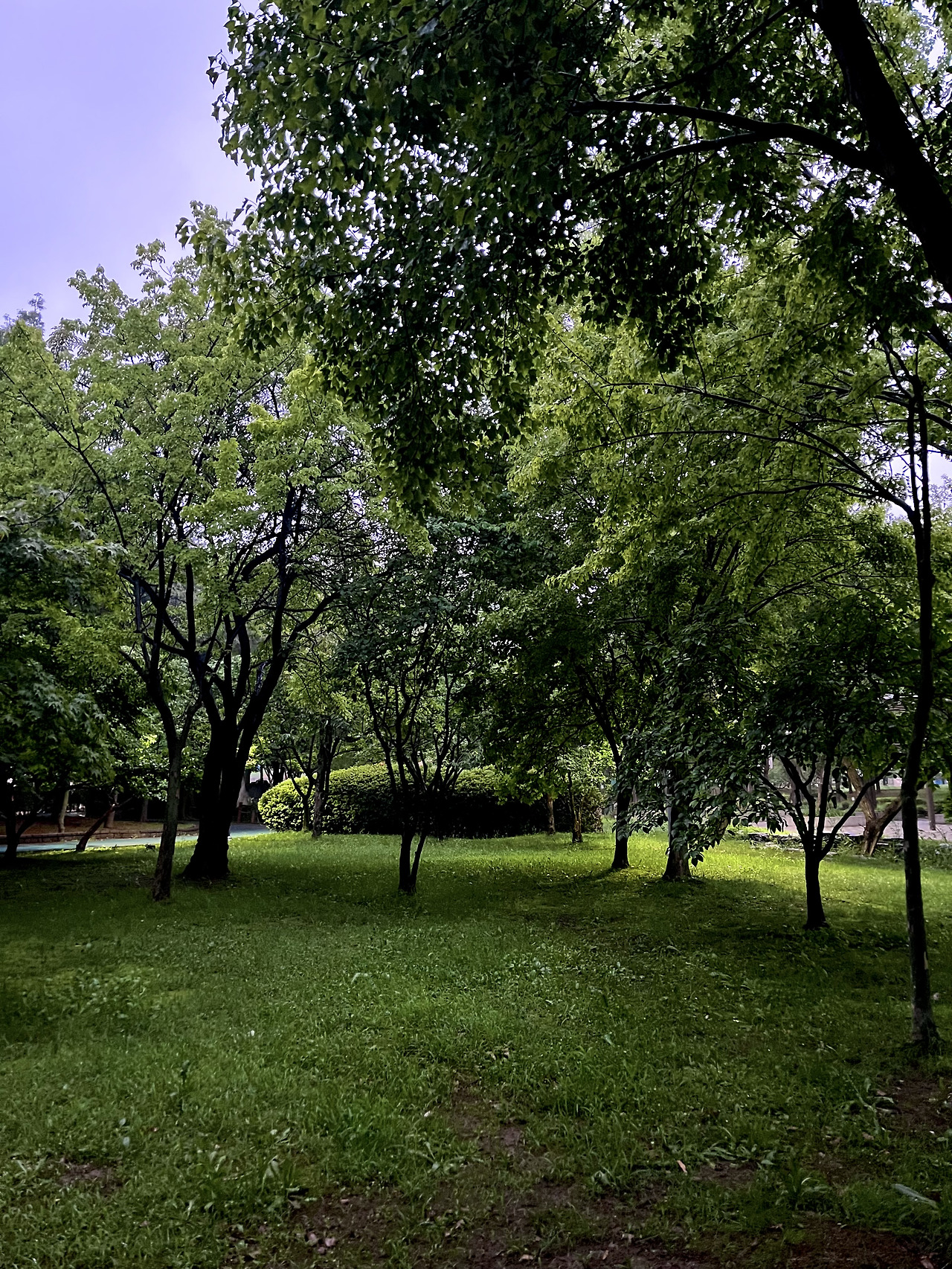 여름 비 내리는 날의 짙게 내려앉은 초록은