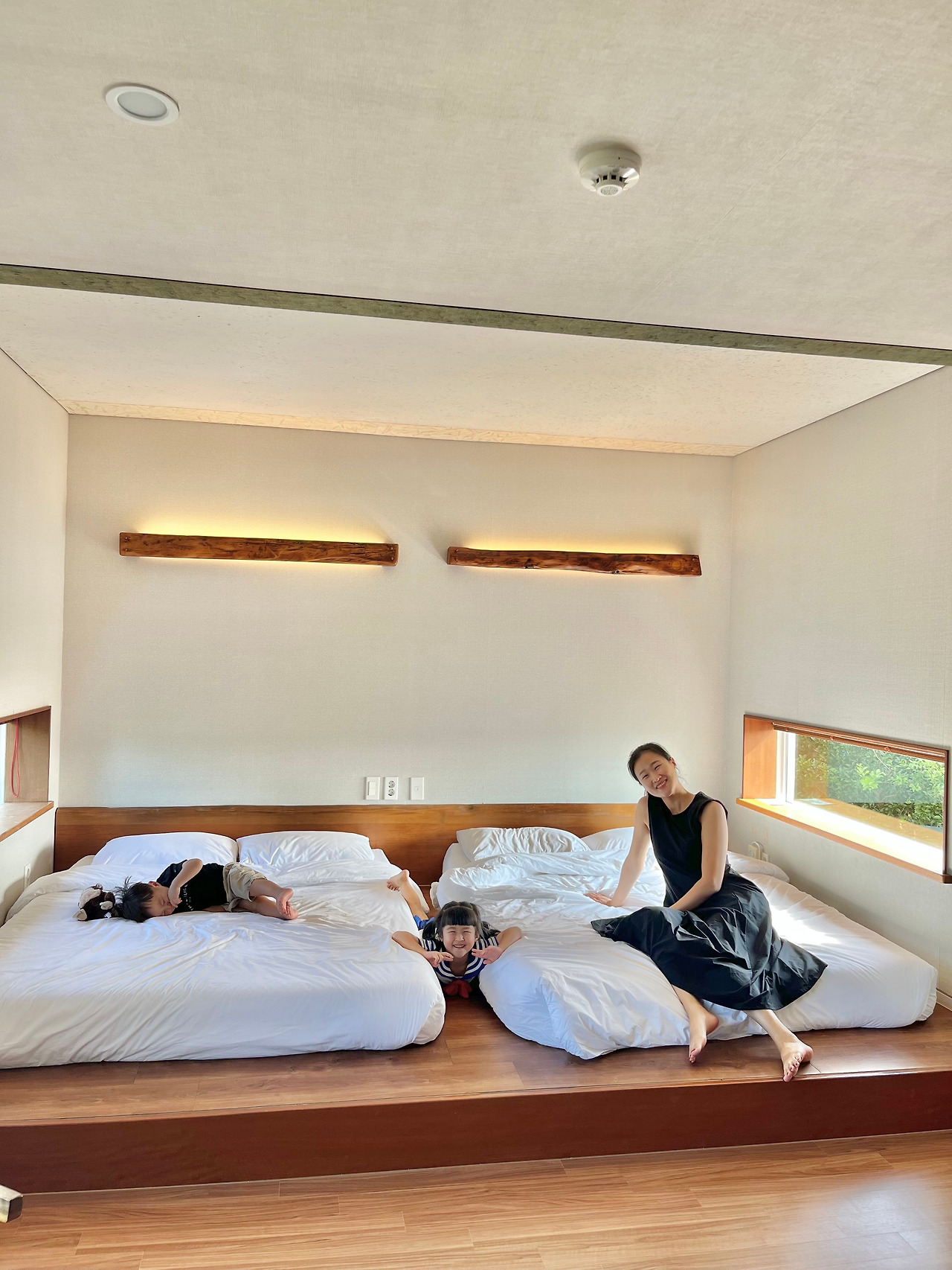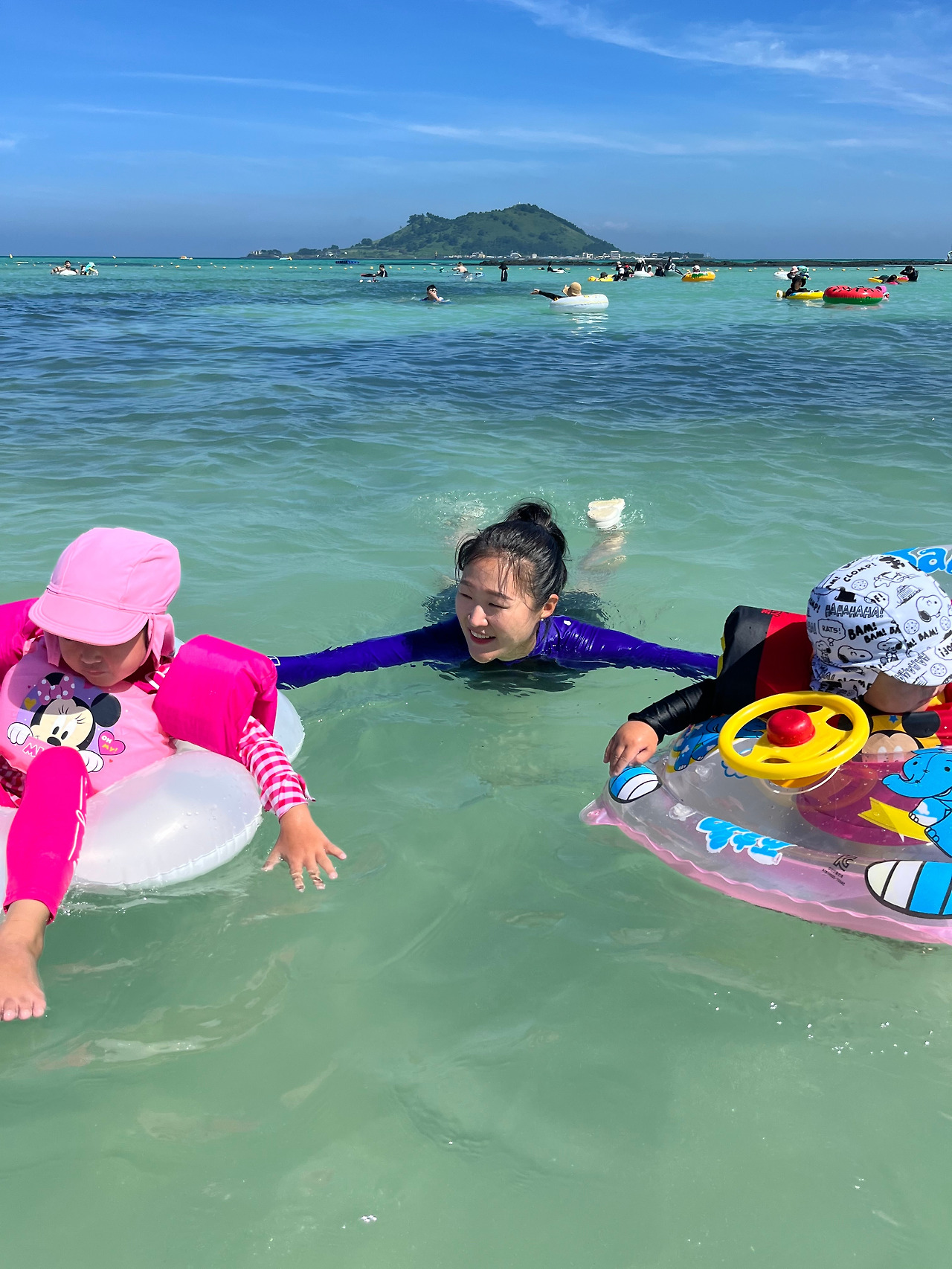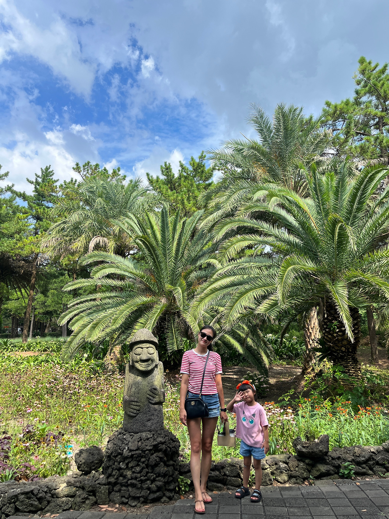 아이 둘을 데리고 여행하면서 계획은 1도 세우지 않았었는데, 오늘은 처음으로 남편과 약간의 계획을 세워보았다. 아직까지 '우도'를 한 번도 가보지 못한 남편과 아이들을 위해서 오늘은 동쪽 숙소를 체크아웃하고 우도를 가보기로 한 것이었다. 숙소 근처 식당에서 점심을 먹고 우도로 넘어갈 계획을 세우고 우도를 오가는 배 시간과 배 값도 알아놓았다. 그런데 점심식사를 하러 가는데 날이 진짜 너무너무 더웠다. (지금까지도 덥긴 엄청 더웠지만ㅋ) 식당 사장님도 자기가 제주 살면서 이렇게 덥기는 또 처음이라며 오늘 37도까지 올라간다고 했다고, 햇볕이 너무 뜨거워 창문 버티칼을 내린 것을 이해해 달라고 하시는 거였다. 점심식사를 하며 남편과 계획을 변경했다. 오늘 우도를 가면 그늘도 잘 없는 그곳에서 애들과 너무 힘들 것 같다는 결론에 이르렀다. 이렇게 더우니 오늘은 나무가 많은 숲으로 가자고 의견을 모으고 점심식사 후에 '사려니숲'에 가기로 했다. 플랜 B를 따라 차를 타고 사려니숲으로 이동했다. 그런데 또 다른 변수가 등장한 것이다. 거의 다 도착할 즈음 아이 둘 다 깊은 잠에 빠진 것을 보고는 다시 계획을 변경해야 했다. 아이들이 자는 동안 다음 숙소가 있는 제주 서쪽 끝으로 (첫 숙소가 제주 동쪽 끝이었다.) 아예 이동을 하기로 했다. 아이들은 이동하는 2시간 넘는 시간 동안 낮잠을 잤고, 우리는 숙소랑 멀지 않은 곳에 있는 한림공원을 가기로 했다. 이쯤 되니 다시 한번 생각이 들었다. 역시 아이들과 다니는 여행에서는 계획이 크게 의미가 없다는 것을 말이다. ㅋ