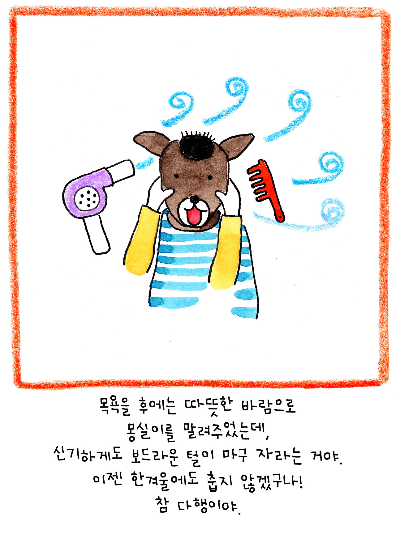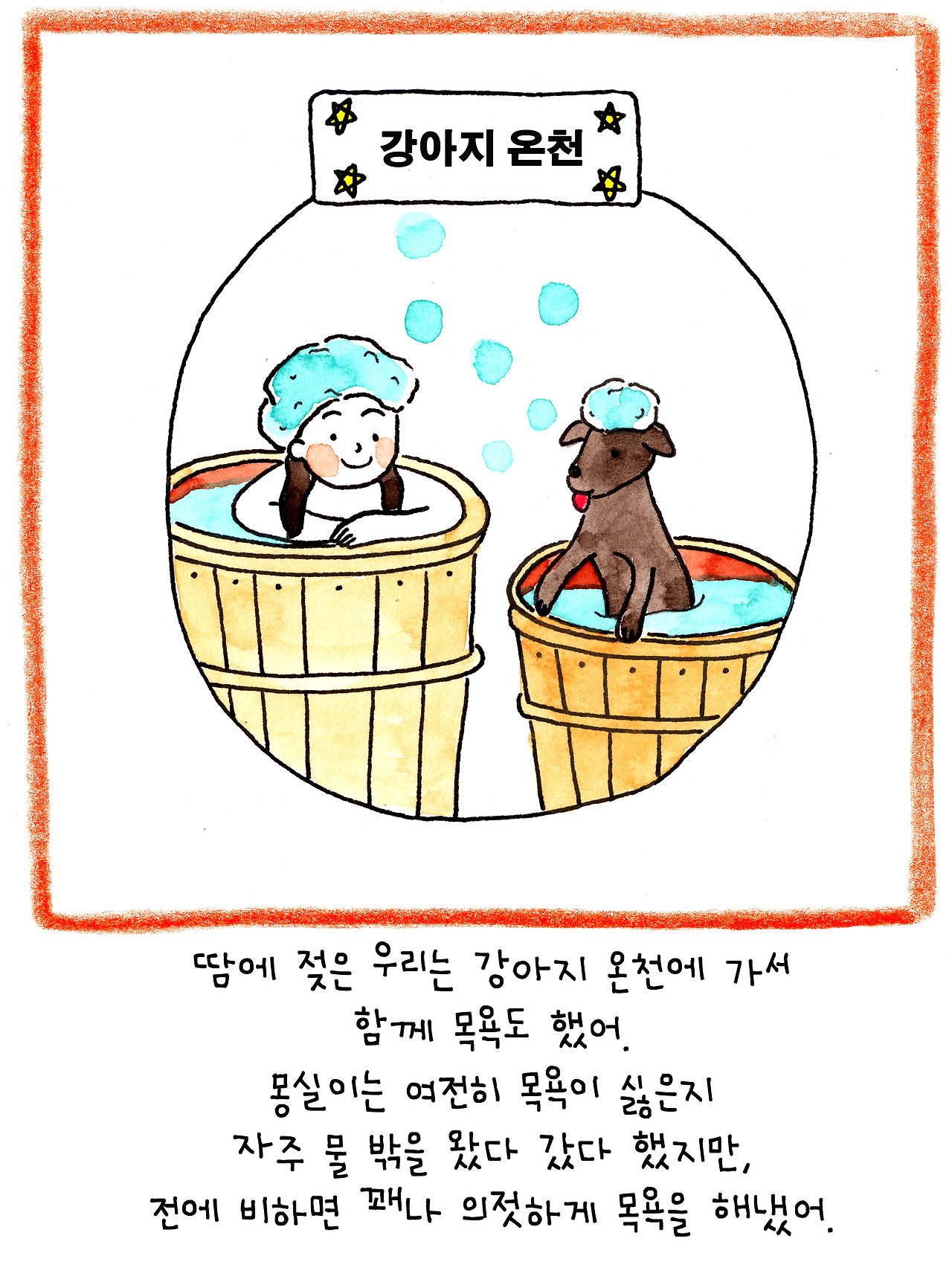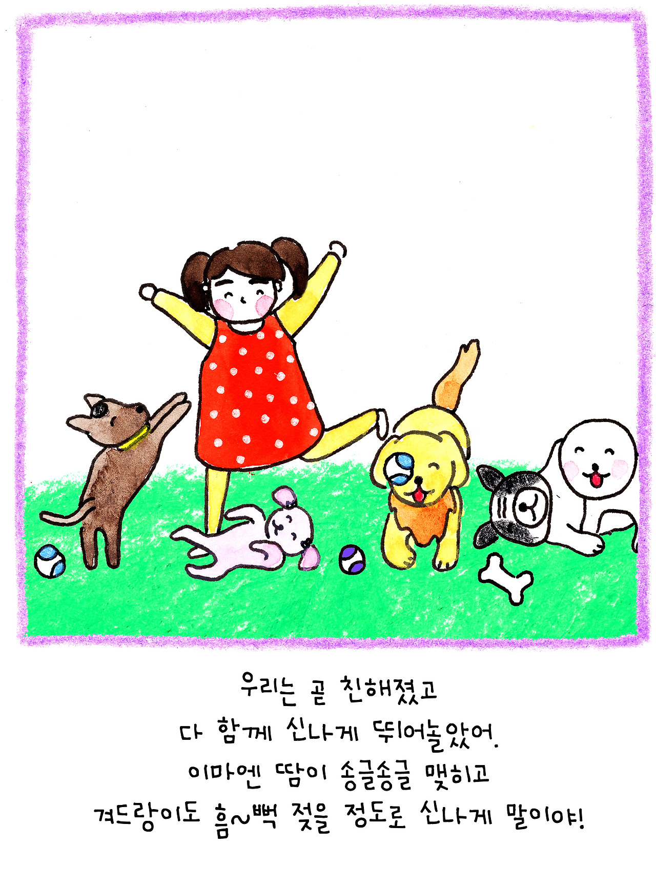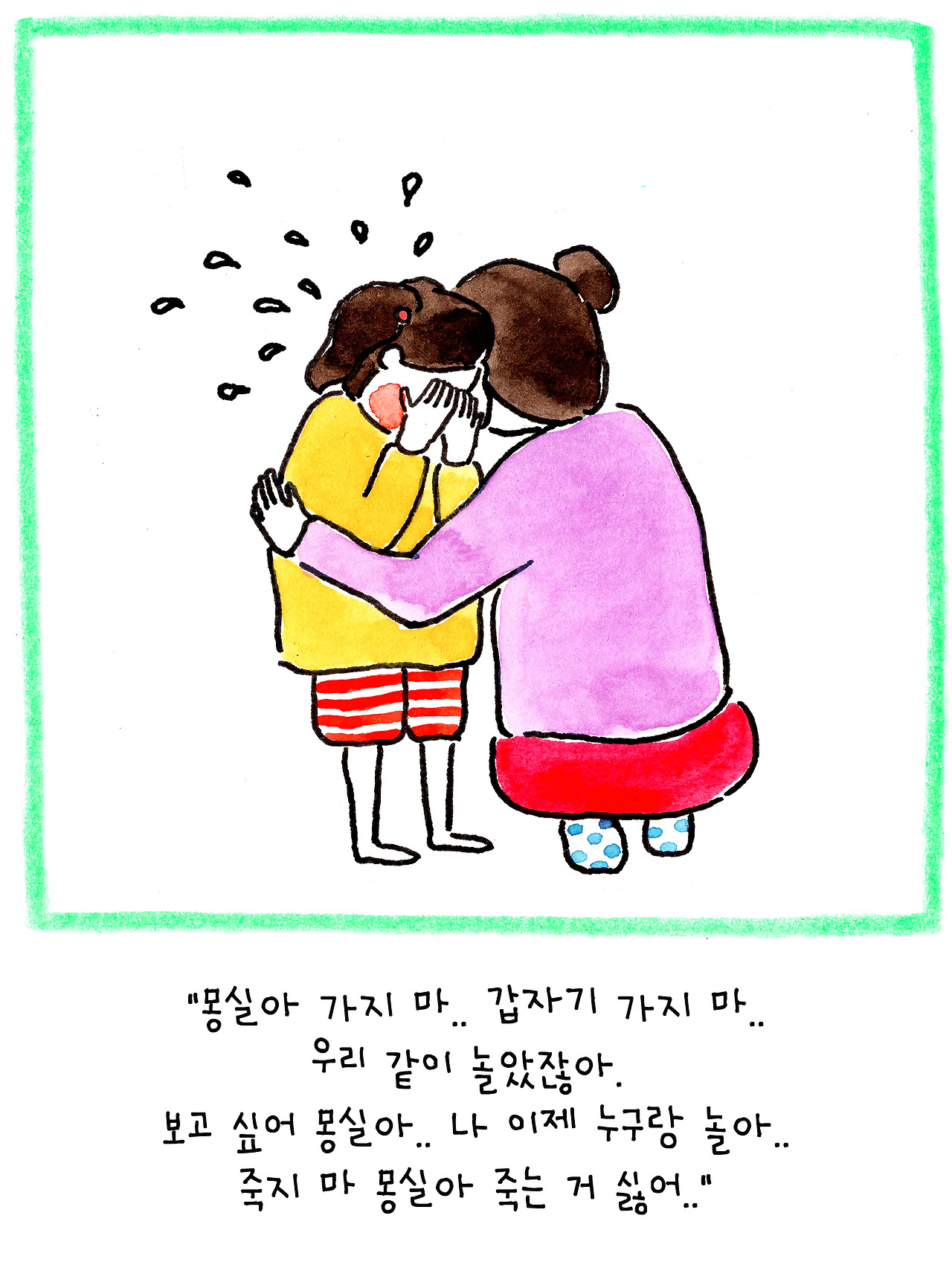 이 이야기는 저보다 더 큰 슬픔에 빠진 딸아이를 위해 만든 이야기입니다. 6살인 딸은 친한 친구였던 강아지의 죽음에 큰 충격을 받은 듯 했어요. 아이에게 죽음을 어떻게 설명해야 할지 난감했습니다.