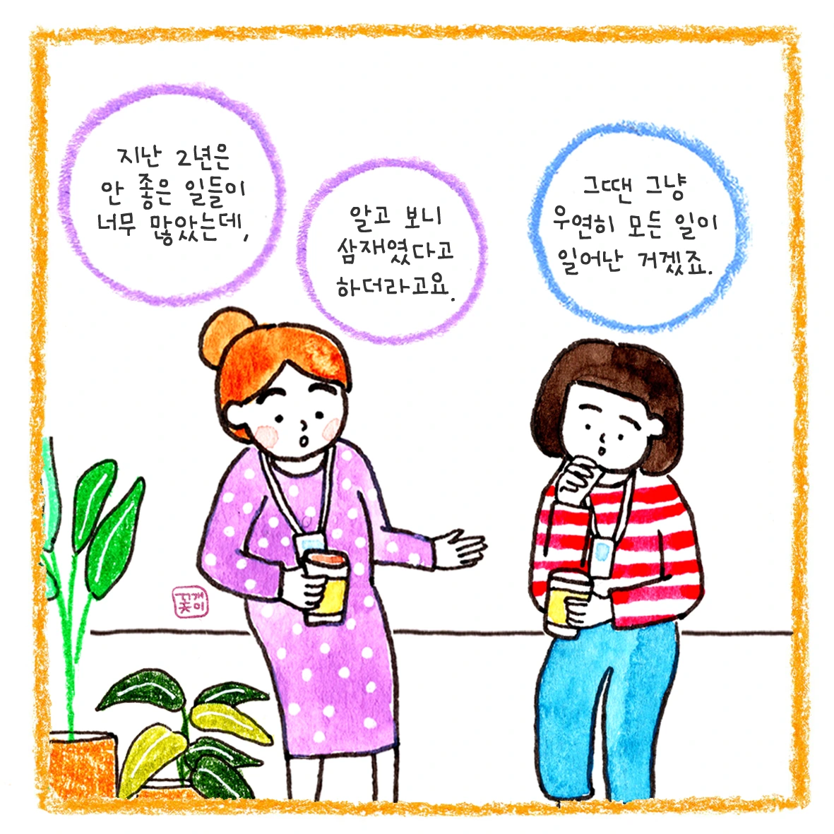 낮에는 HR 부서 교육담당자로 일하고 퇴근 후 그림일기로 일상을 기록하는 사람. 공황장애 에세이 <지하철이 무섭다고 퇴사할 순 없잖아>, <엄마가 되었지만, 저도 소중합니다>의 저자